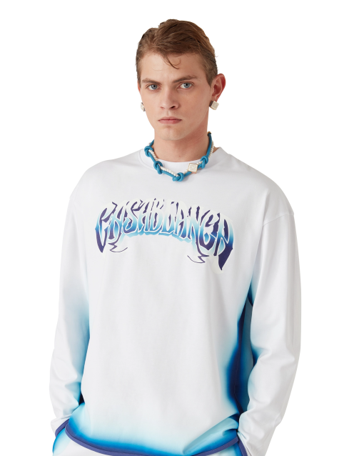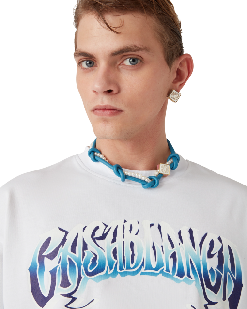 The Blue Fade long-sleeve t-shirt is a printed design crafted from organic cotton fabric and features hand-drawn typography of the Casablanca logo, inspired by the gothic typeface used in tattoos. Completed with a classic crew neck.