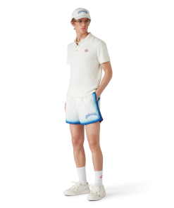 The Blue Fade swim shorts are a printed design featuring the house’s Casablanca logo in a hand-drawn typography inspired by the gothic typeface used in tattoos. Crafted from polyester fabric and finished with an elasticated waistband, internal drawstring fastening, in-seam side pockets, a lining, and an inner pocket.