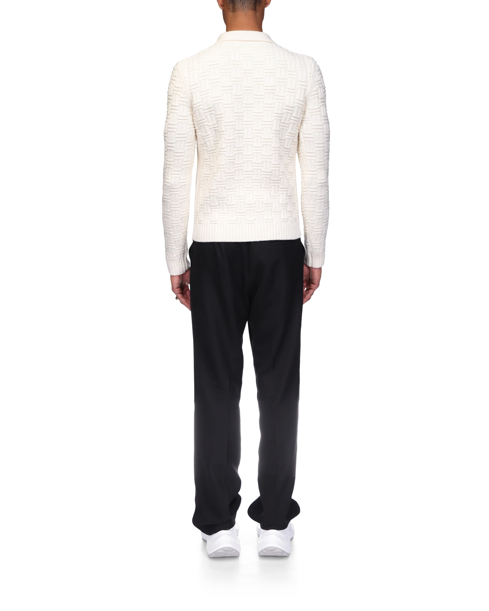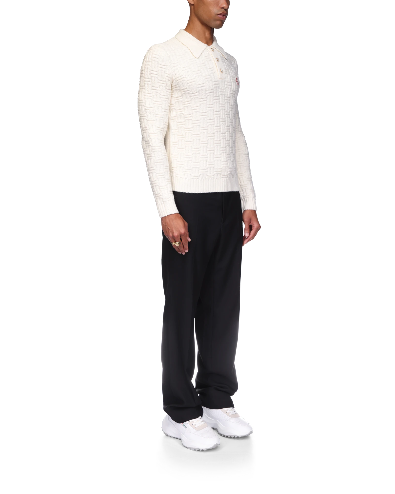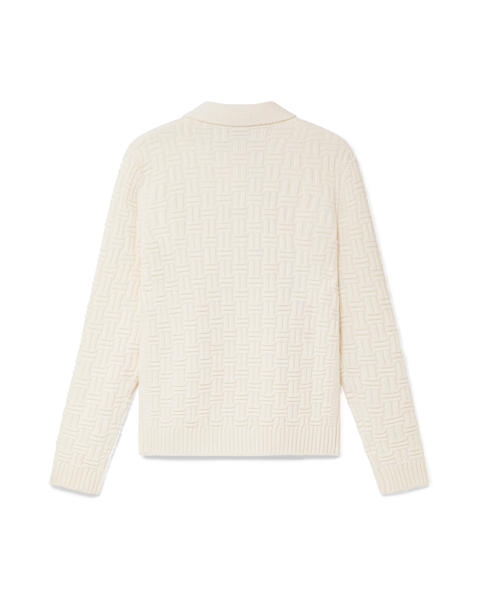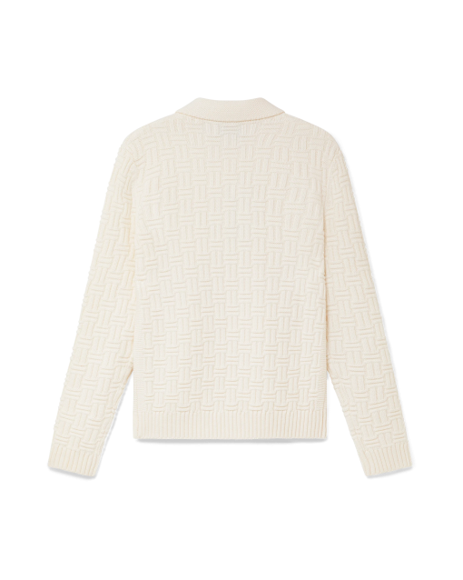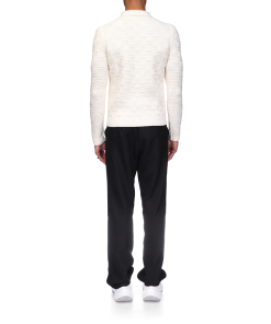 The column knit polo is a long-sleeved woven design crafted from a soft luxurious merino wool. Completed with the house’s diamond logo, signature gold rim pearl buttons, a collar, and rib cuffs and hem detail.
