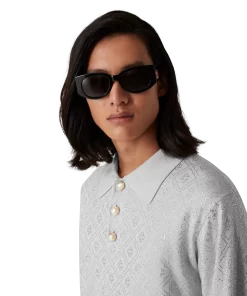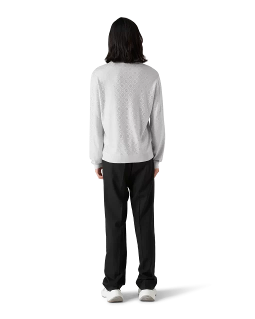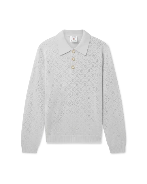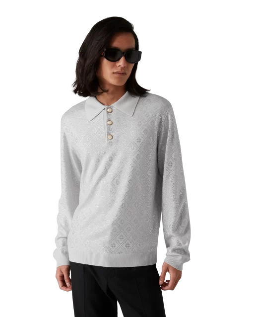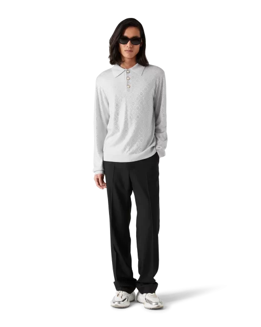 The crystal monogram knit polo shirt is a long-sleeve design crafted from merino wool fabric, featuring the house’s crystal monogram. Completed with the house’s signature gold rim pearl buttons, a button closure, and ribbed collar, cuffs, and hem.