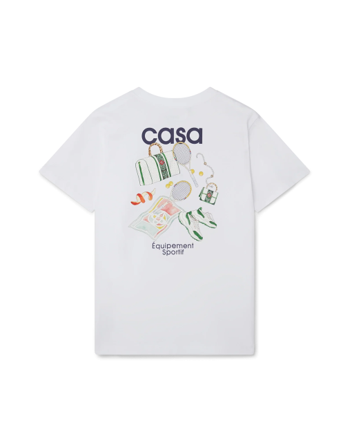 The Equipement Sportif t-shirt features a print of the house’s signature artwork reinterpreted for this season, on the left chest area and repeated in a larger print on the back. Crafted from 100% organic cotton and completed with a classic crewneck and Casablanca branded label.