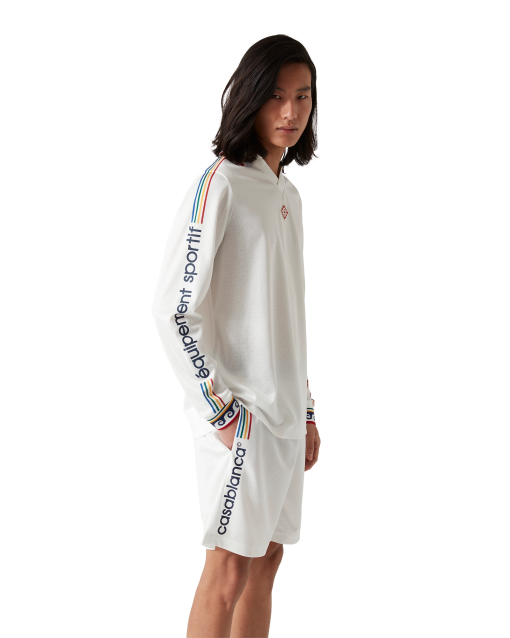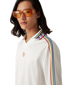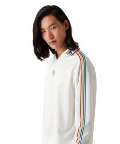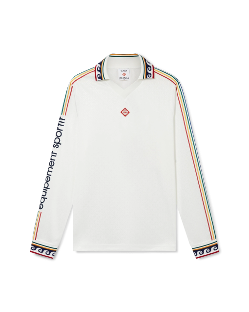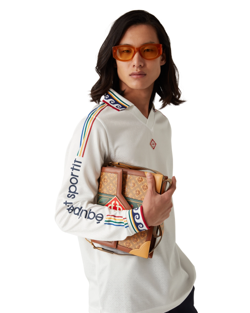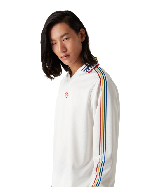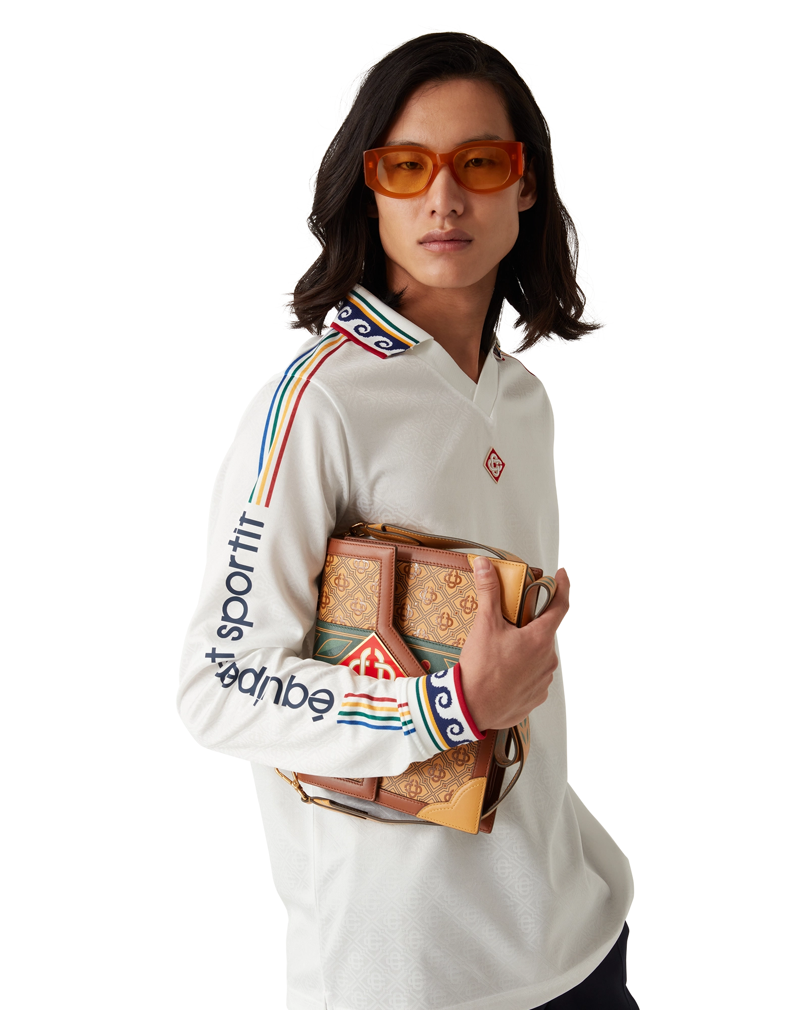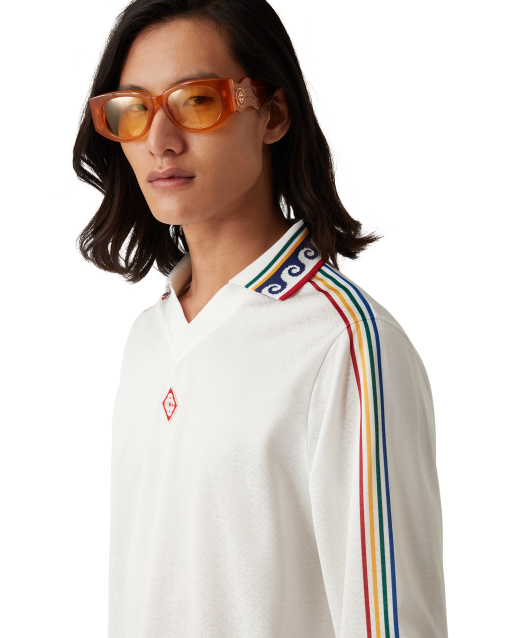 The jacquard monogram football shirt is a long-sleeve all-over print style featuring the house’s interlocking CC monogram, crafted from a jacquard monogram fabric. Completed with a rib collar and cuffs, Casablanca branding down the sleeves, and a signature diamond logo at the collar.