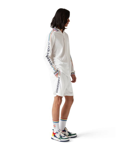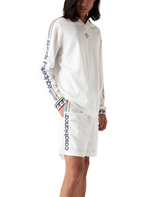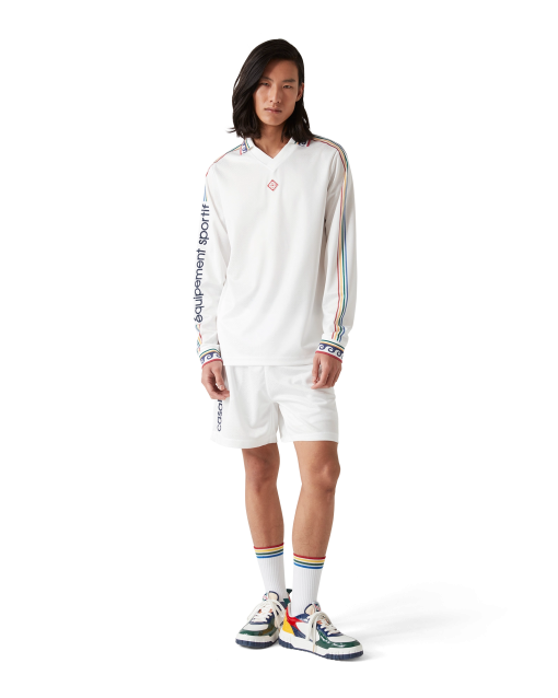 The jacquard monogram football shorts are a sportswear design crafted from a jacquard monogram polyester fabric incorporating the house’s signature Casablanca logo down the side. Completed with an elasticated waistband with drawstring fastening and in-seam side pockets.