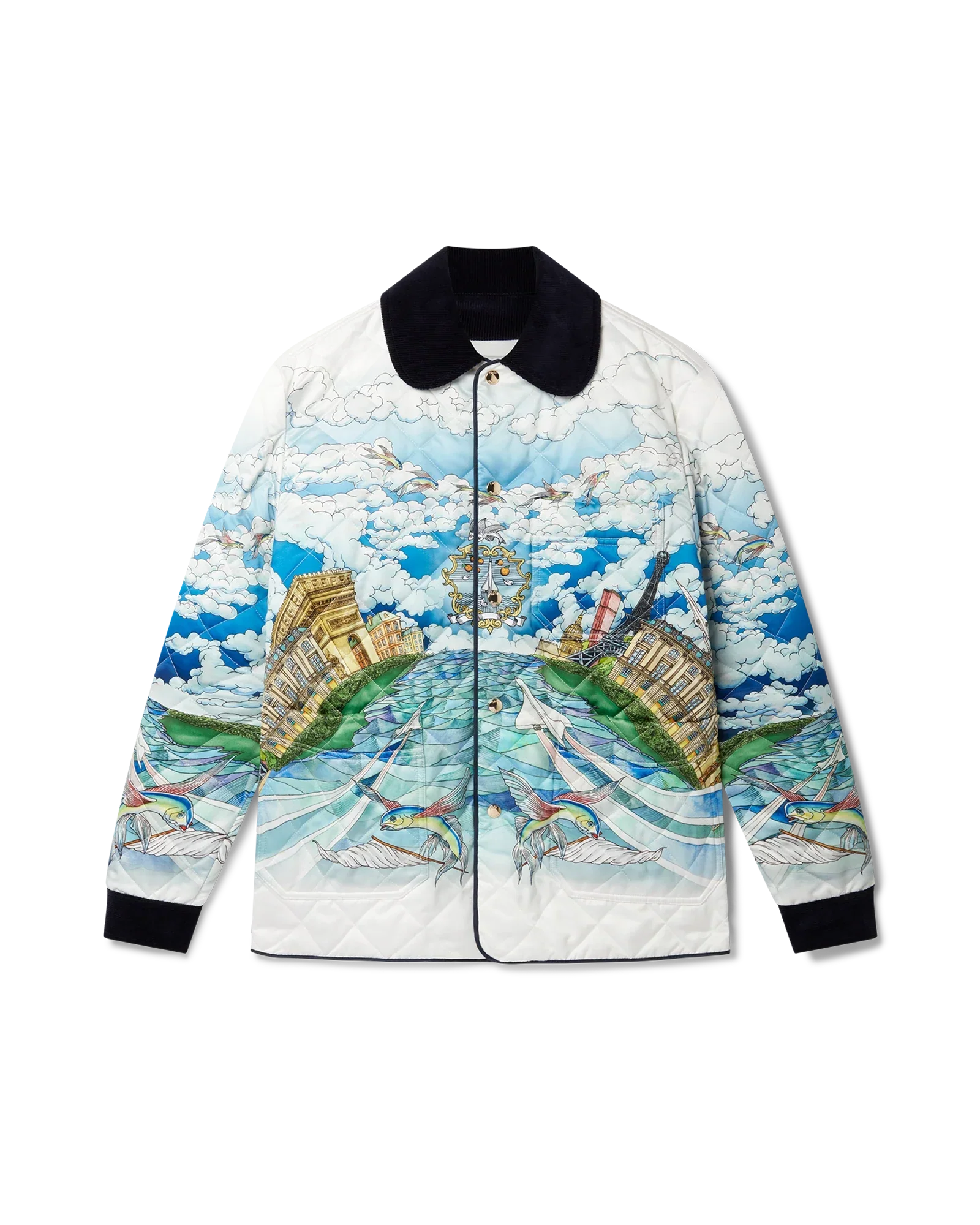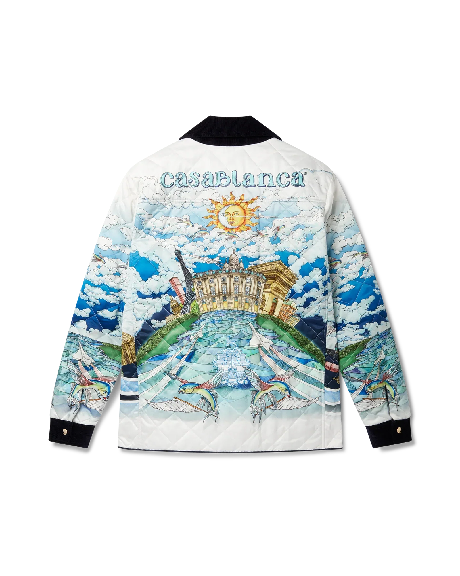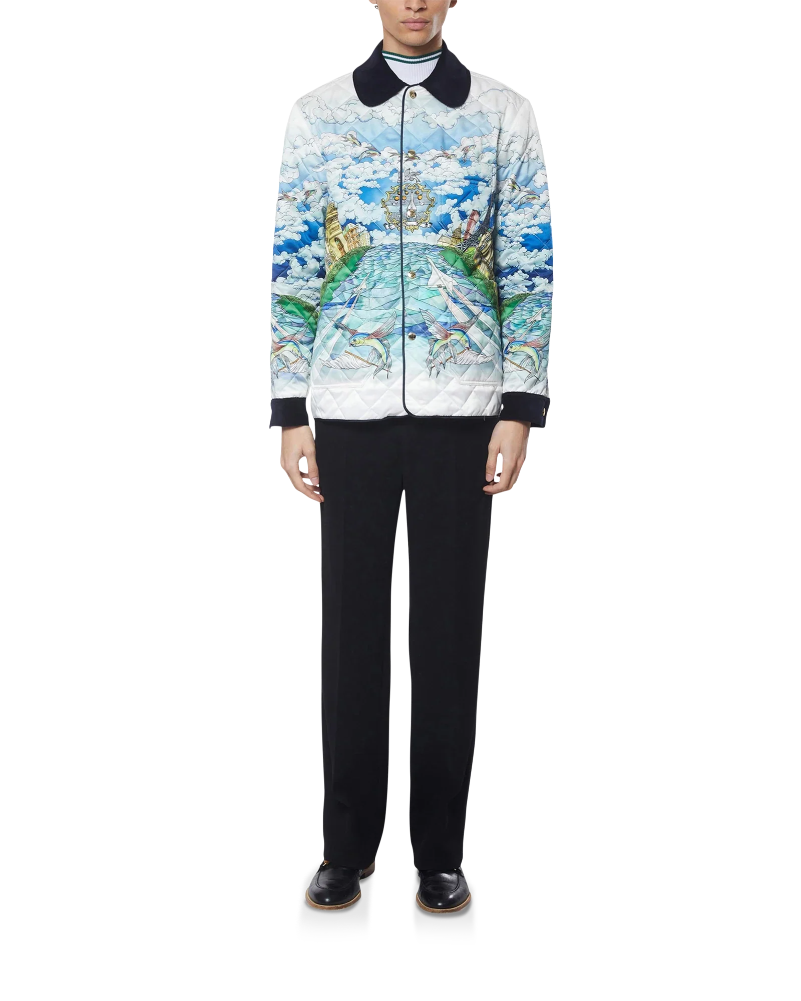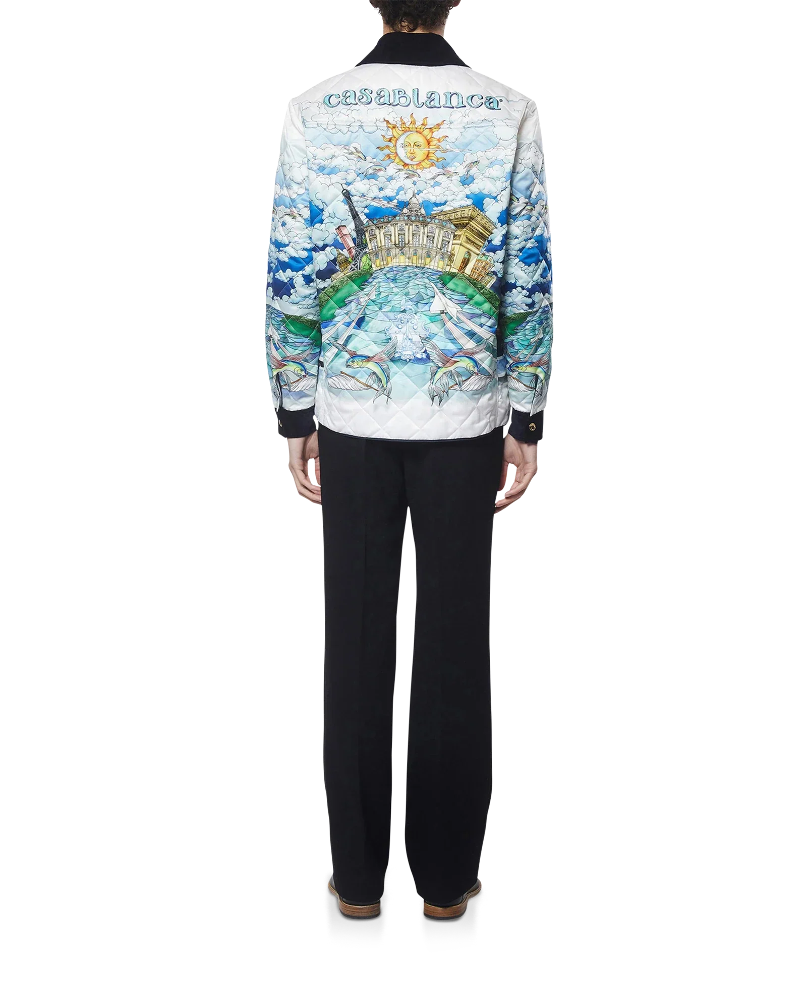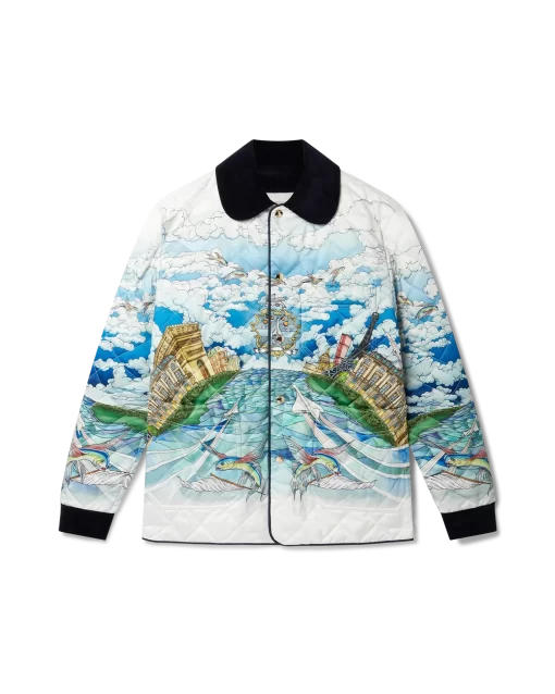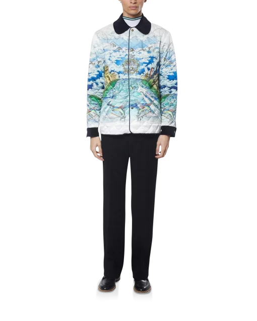 100% Polyester, Contrast:100% Organic Cotton, Lining: 100% Organic Cotton, Padding: 50% Cotton 50% Polyester. Dry Clean Only. Made in Italy.