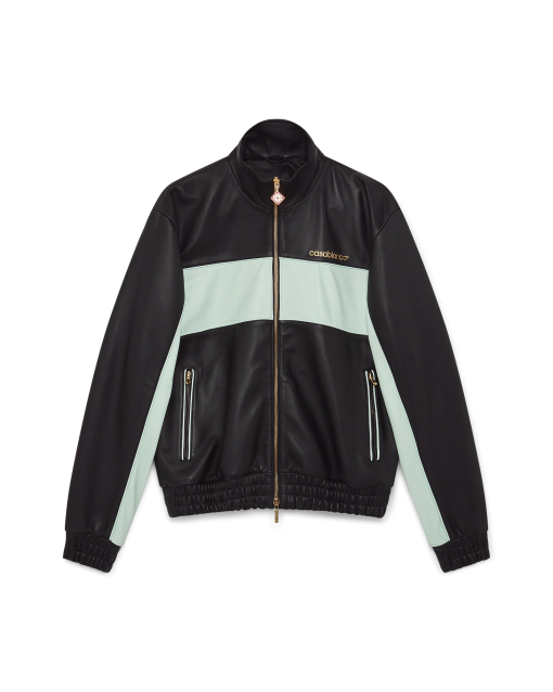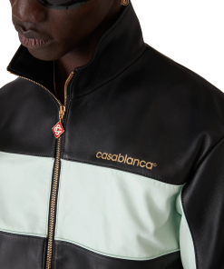 The leather track jacket is a long-sleeve design crafted from lamb nappa. Completed with a lining, a funnel collar, zip closure featuring the house’s signature diamond logo zipper tab, slanted welt pockets, and elasticised cuffs and hem.