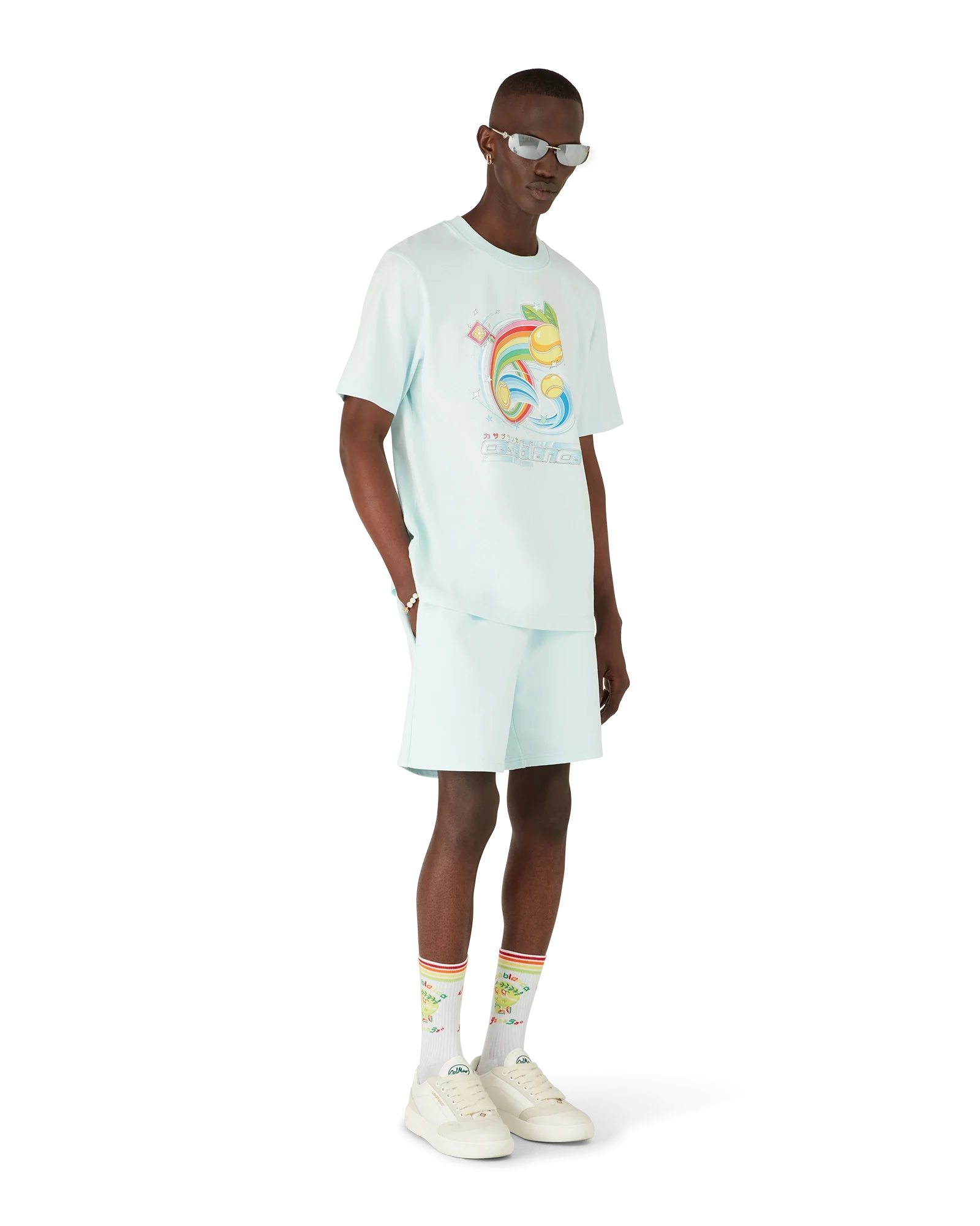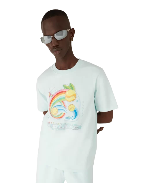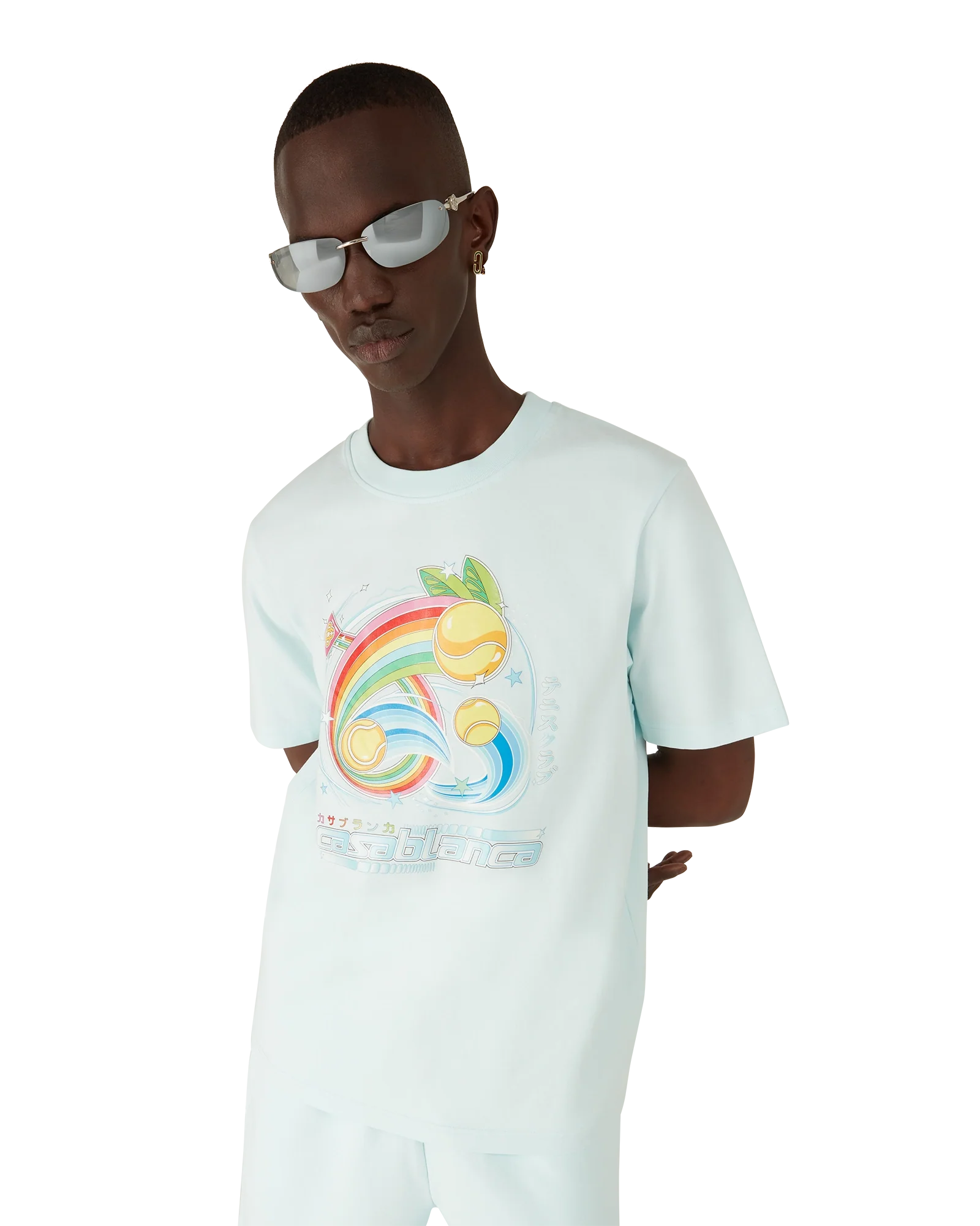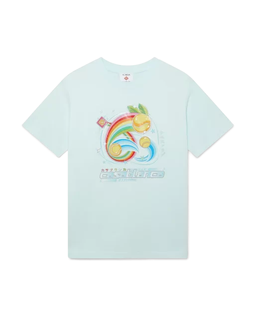 The Manga Tennis Ball t-shirt is a short-sleeve design crafted from organic cotton fabric featuring seasonal artwork that is still exploring the world of Kawaii and Manga, playing with Casablanca’s iconography, using tennis balls as oranges for a fun twist. Completed with a classic crew neck.