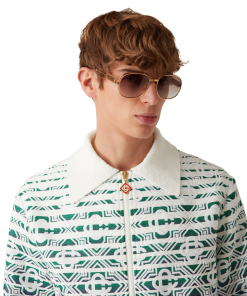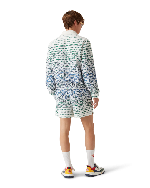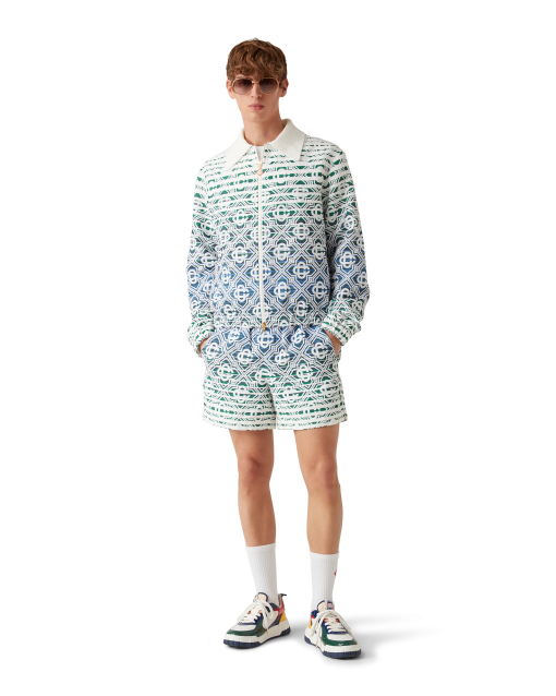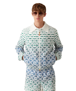 The monogram gradient towelling jacket is a soft textured printed design with a classic silhouette crafted from a gradient towelling fabric featuring the house’s signature diamond monogram. Completed with a zip closure, gold-plated hardware, and a peak collar.