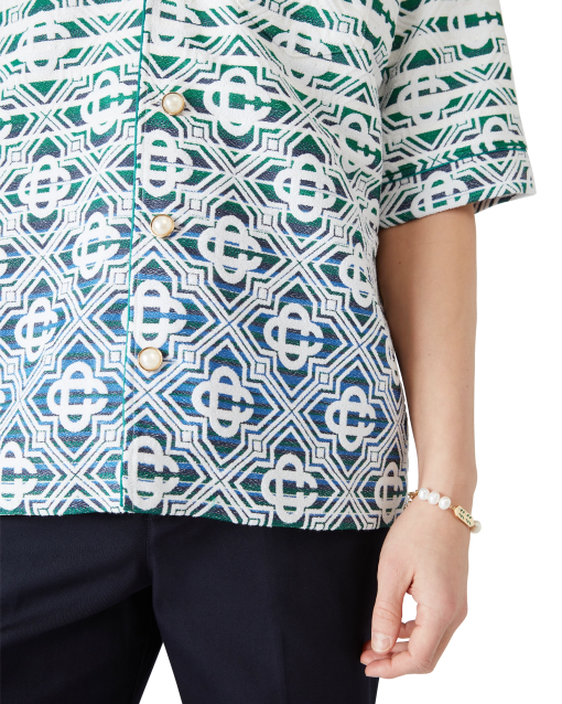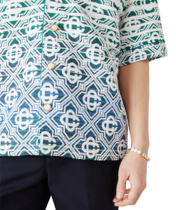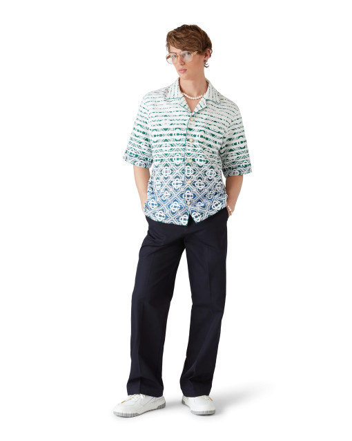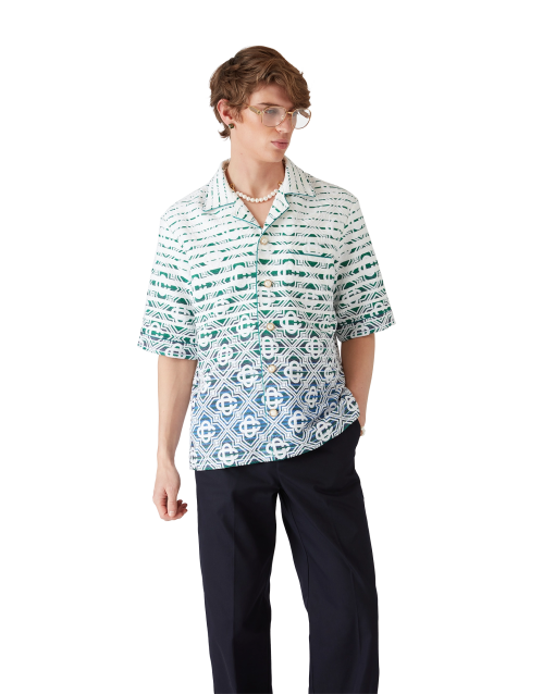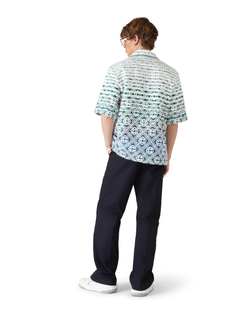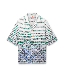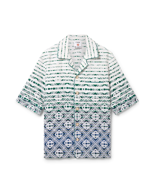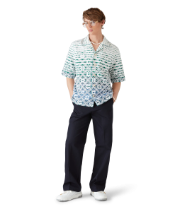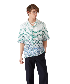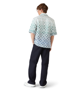 The monogram gradient towelling shirt is a short-sleeve soft textured printed design with a classic silhouette crafted from a gradient towelling fabric featuring the house’s signature diamond monogram. Completed with a button closure, a breast pocket, and a Cuban collar.