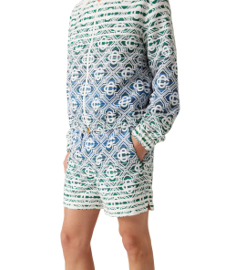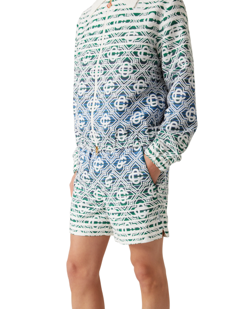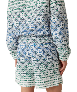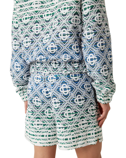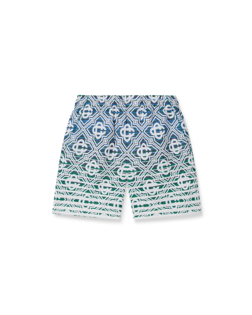 The monogram gradient towelling shorts are a soft textured printed design with a classic silhouette crafted from a gradient towelling fabric featuring the house’s signature diamond monogram. Completed with an elasticated waistband, drawstring fastening, slanted side pockets, a lining, and slits at the hems.