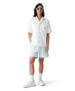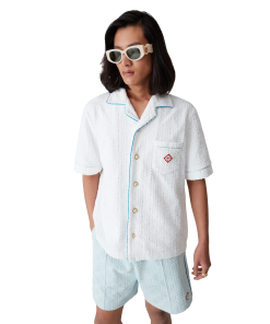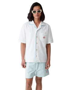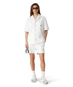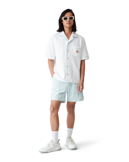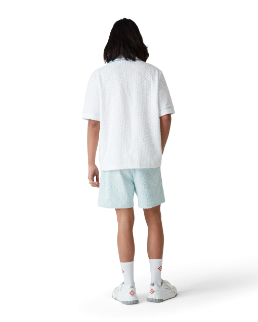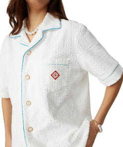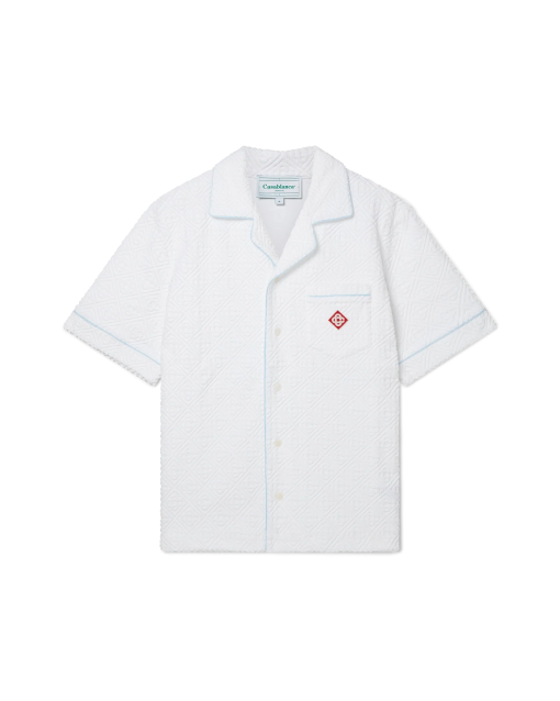 The monogram towelling shirt is a short-sleeve design crafted from a monogram cotton blend towelling fabric and features the house’s signature diamond logo. Completed with a breast pocket, contrast piping, gold rim pearl buttons and a Cuban collar.