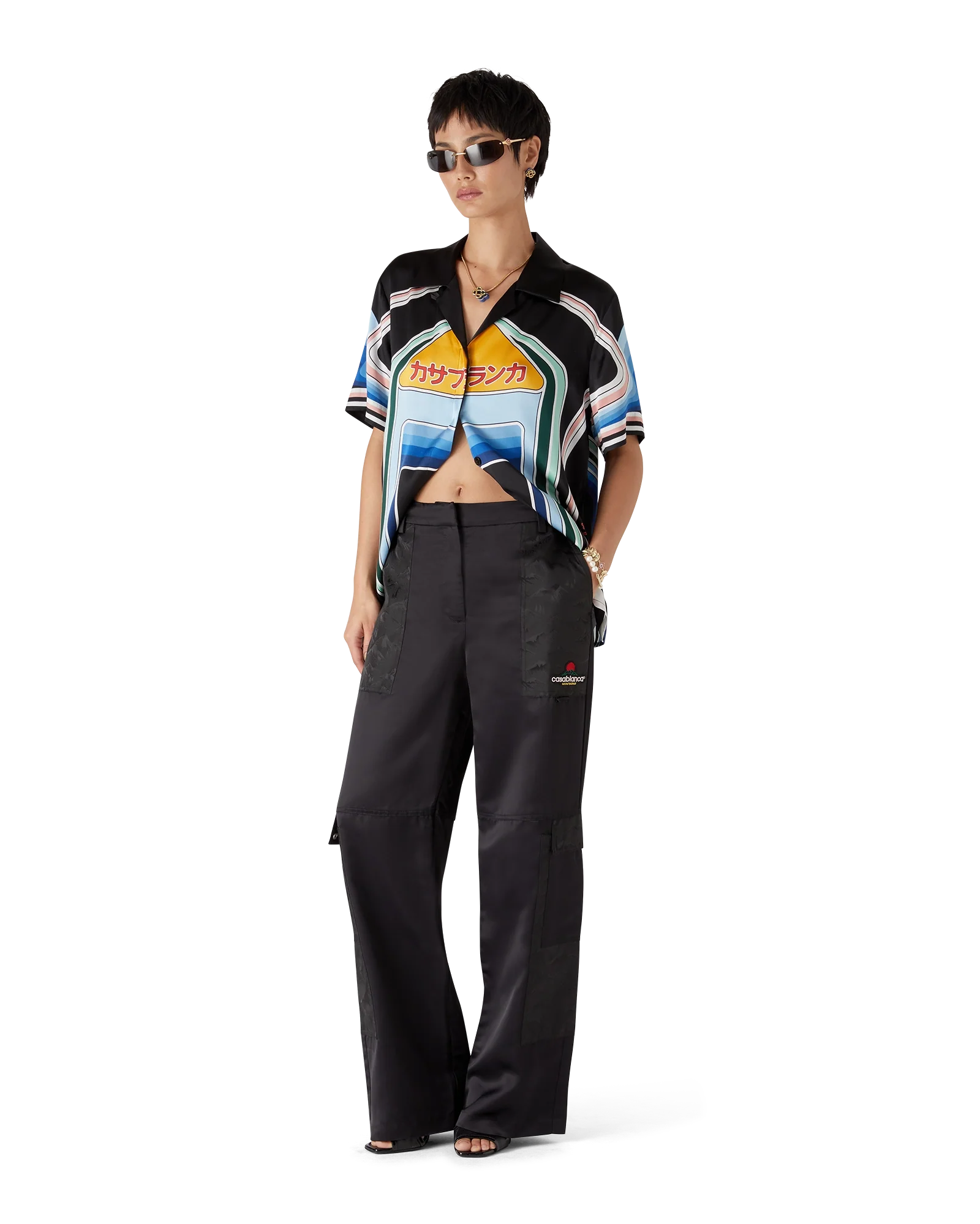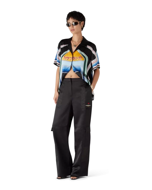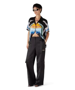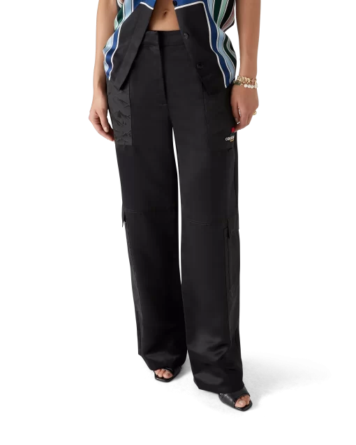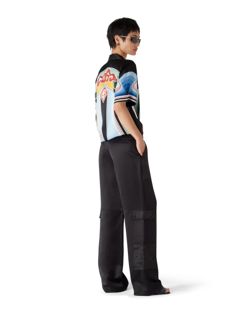 The nylon and satin mountain camo cargo trousers are a straight-leg design featuring the house’s signature diamond monogram. Completed with a panel on each thigh, gold-plated hardware, slanted front pockets, back patch pockets, zip closure and belt loops.