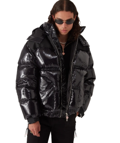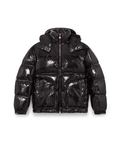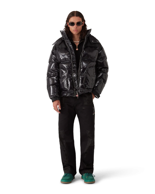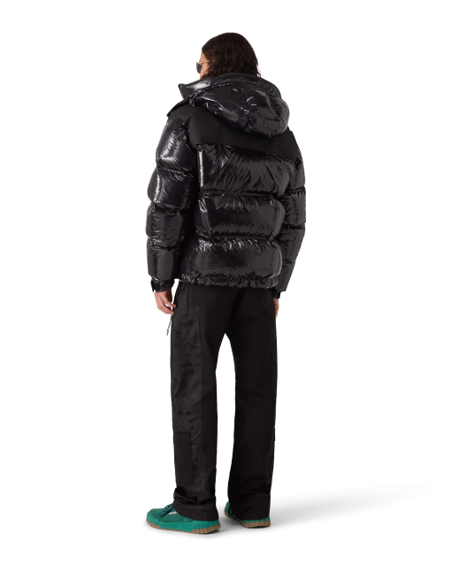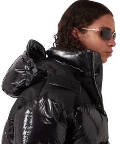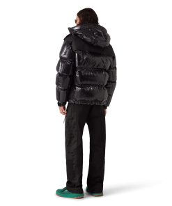 The nylon puffer jacket is a modern boxy outerwear design crafted from ripstop nylon fabric with down filling and contrasting monogram jacquard panel across the shoulders. Completed with a hood featuring CC logo toggles and drawstring fastenings, a stand-up collar providing extra warmth and protection against the elements, a zip closure with the house’s signature diamond logo zipper tab, front pockets with zip closure, branded adjustable cuff straps, and elasticised hem and cuffs.