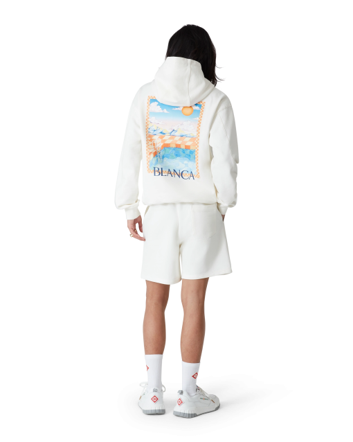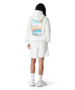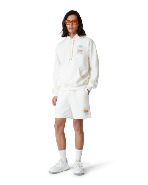 The Oasis sweatshorts are printed design crafted from organic cotton fabric, featuring the house’s seasonal artwork with design elements of nature, architecture, and tennis. Completed with an elasticated waistband, gold-tipped drawstring fastening, in-seam side pockets, and a back patch pocket.