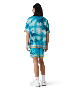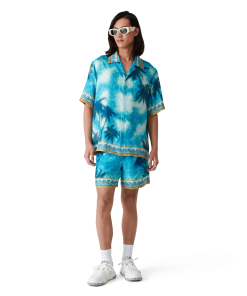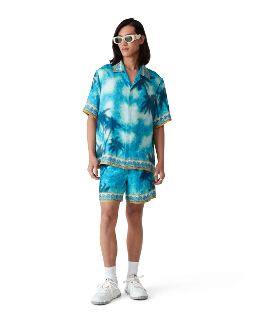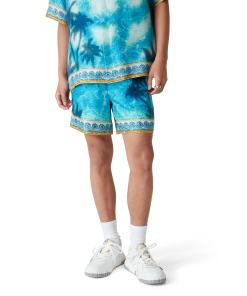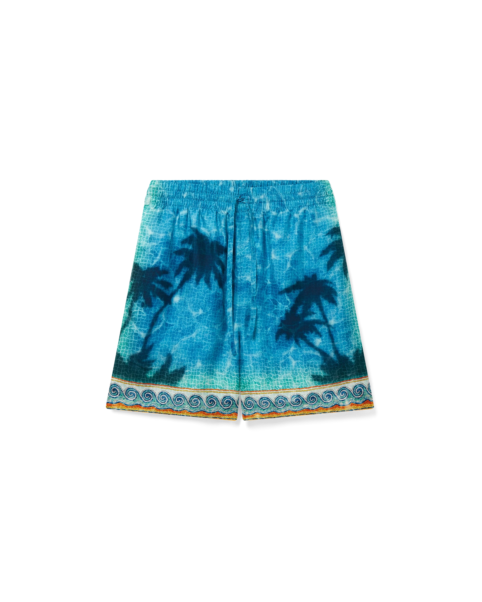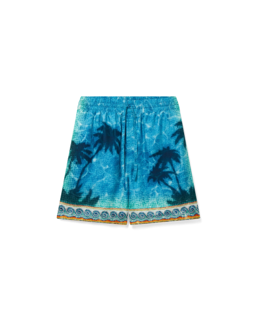 The Poolside Emblem silk shorts are an all-over printed design featuring hand-painted scenes created especially for the collection and crafted from silk twill fabric. Completed with an elasticated waistband, drawstring fastening, in-seam side pockets, a back patch pocket, and Greek-mosaic-inspired edge detail down the sides and around the hem.