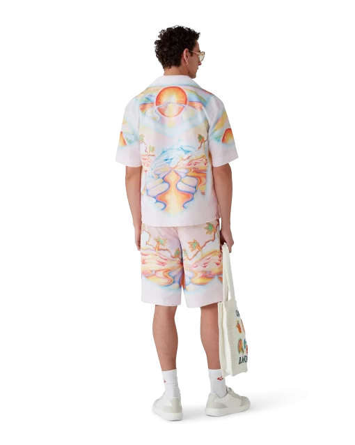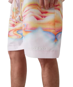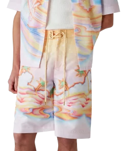 The Psychedelic Nirvana swim shorts are a knee-length design crafted from printed swim fabric featuring signature artwork inspired by ’70s airbrushed surfboards in California, using pastel colours that give the print an almost dream-like, idealistic feeling. Completed with an elasticated waistband, drawstring fastening, front pockets and a net lining.