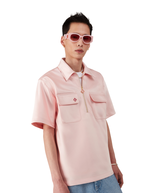 The satin quarter zip shirt is a short-sleeve design crafted from satin fabric. Completed with zip closure featuring the house’s signature diamond logo, a collar, and flap patch pockets.
