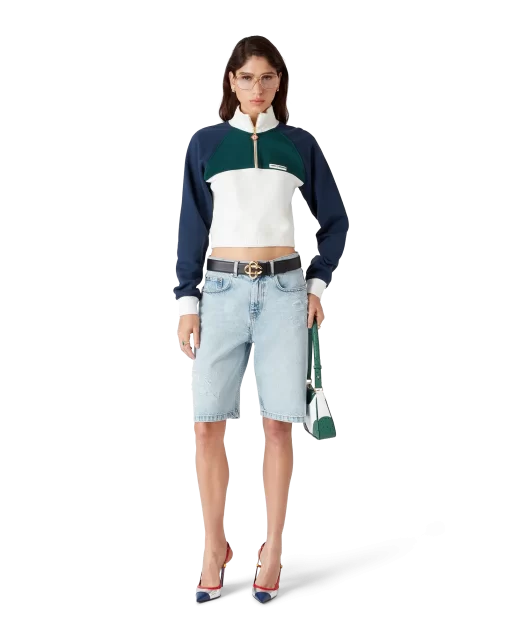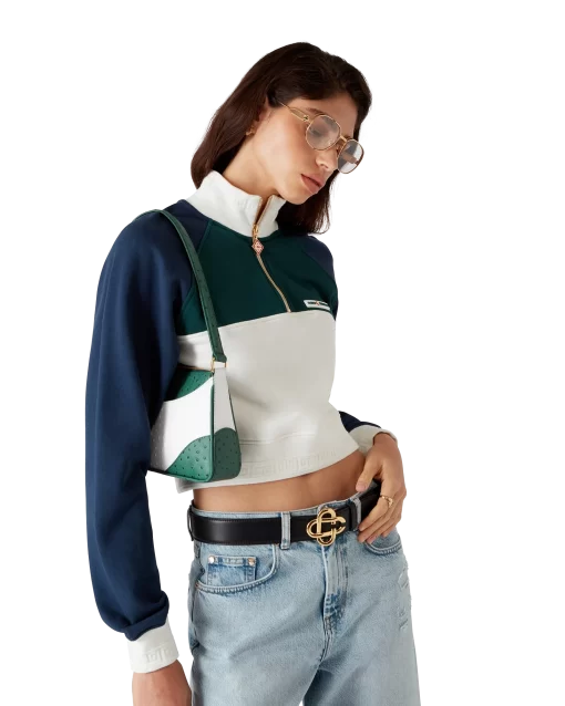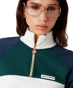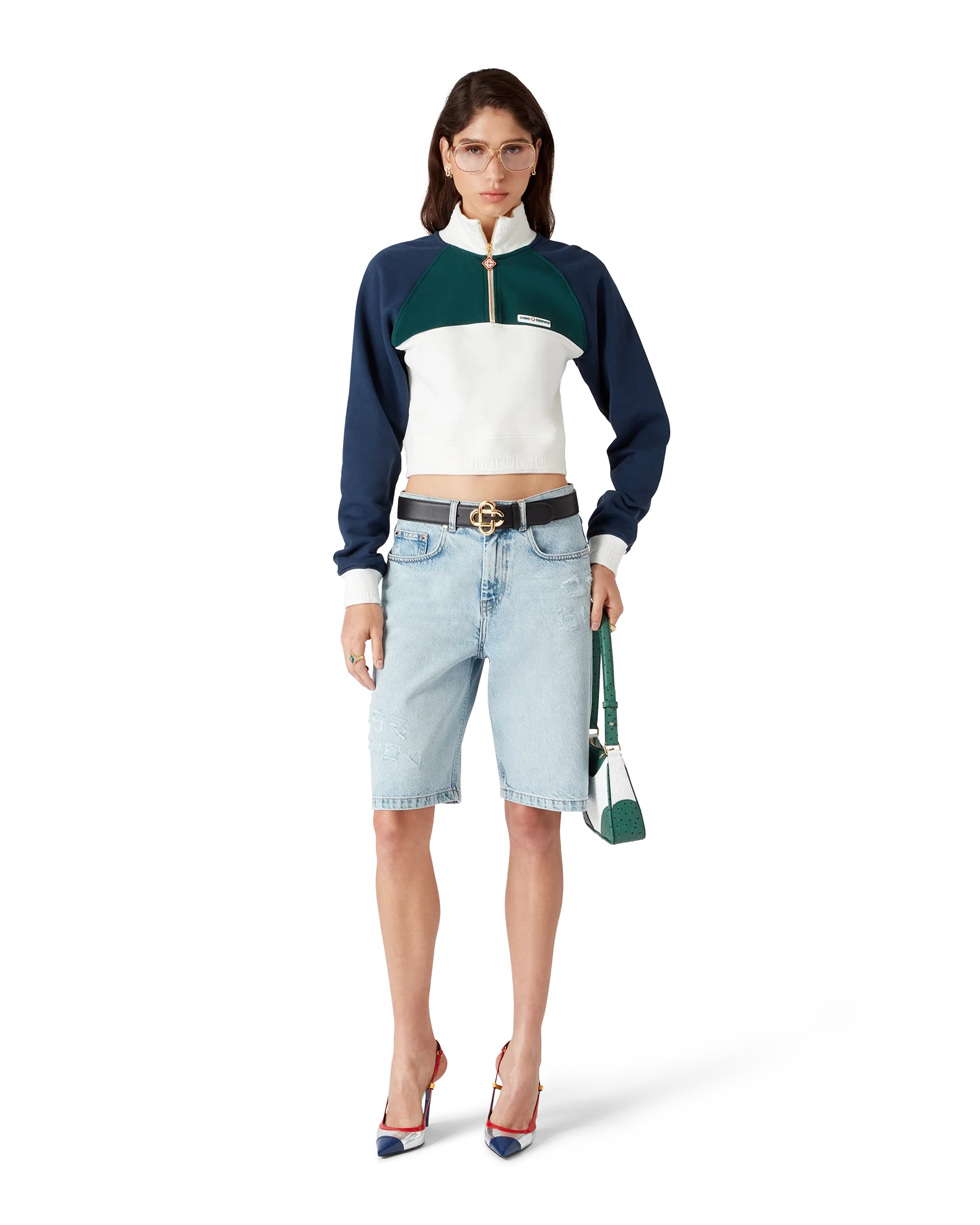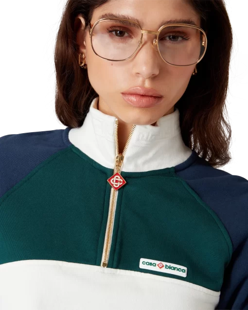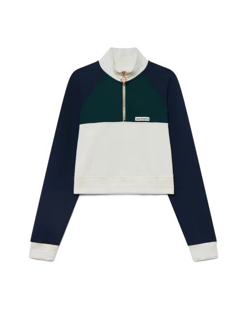 Casablanca Paris Women’s Colourblock Quarter Zip Cropped Sweatshirt | White
