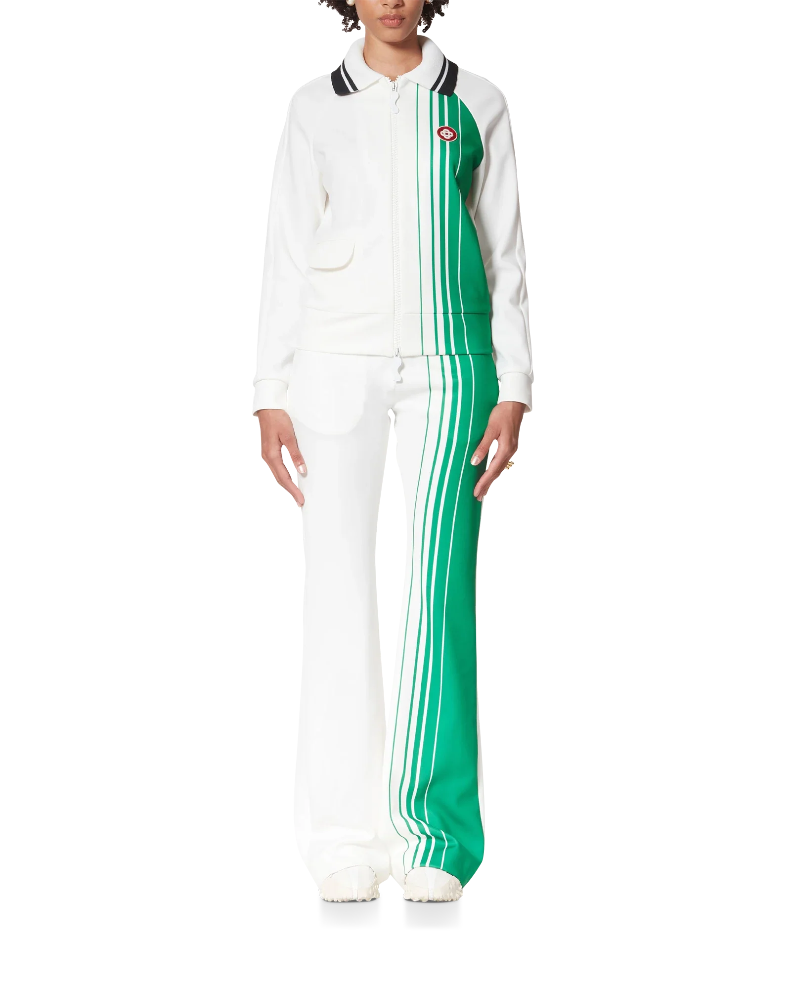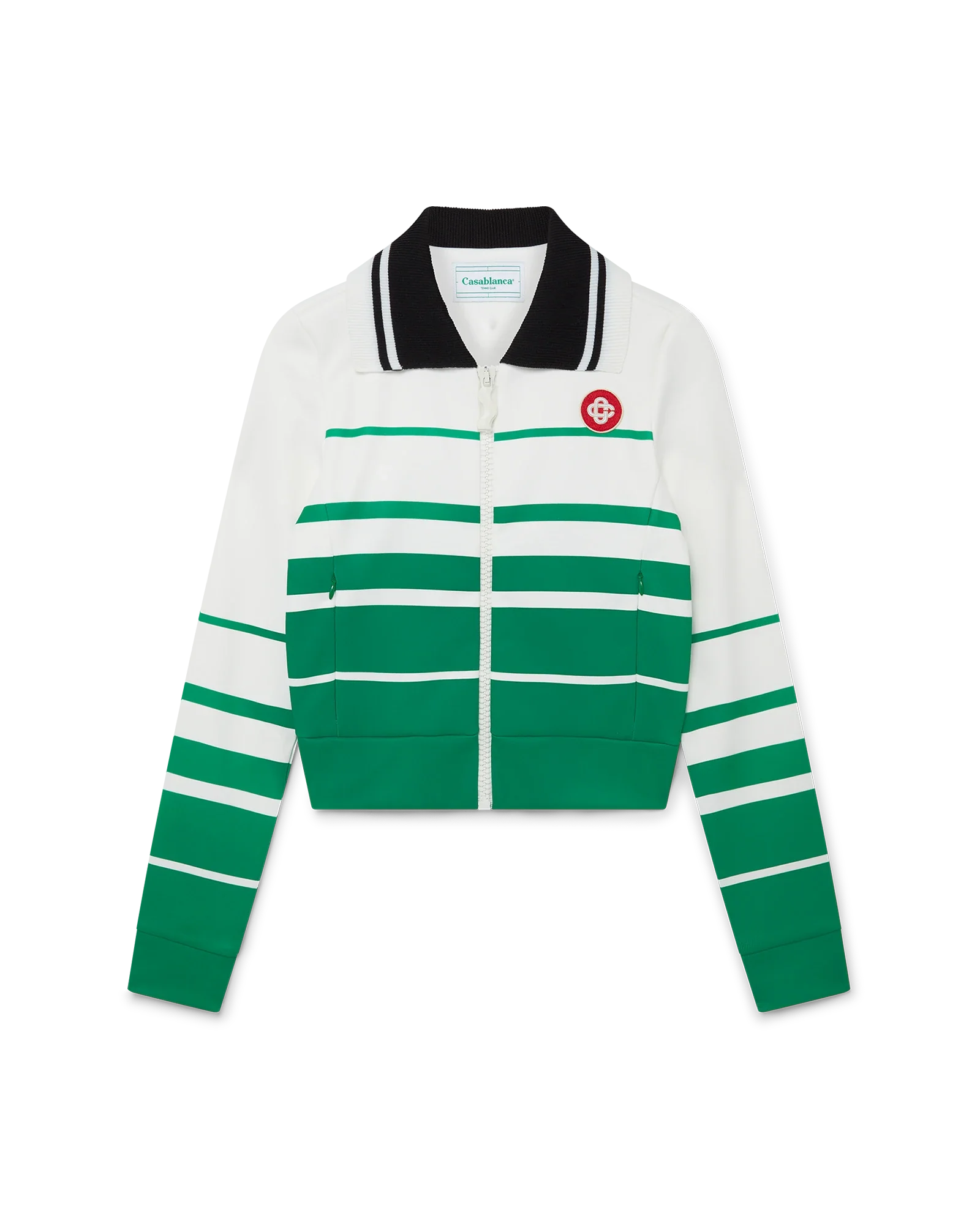 64% Polyester 36% Cotton, Rib: 100% Polyester, Applique: 95% Rayon 5% Polyester, Lining: 100% Cotton. Dry Clean Only. Made in Portugal.
