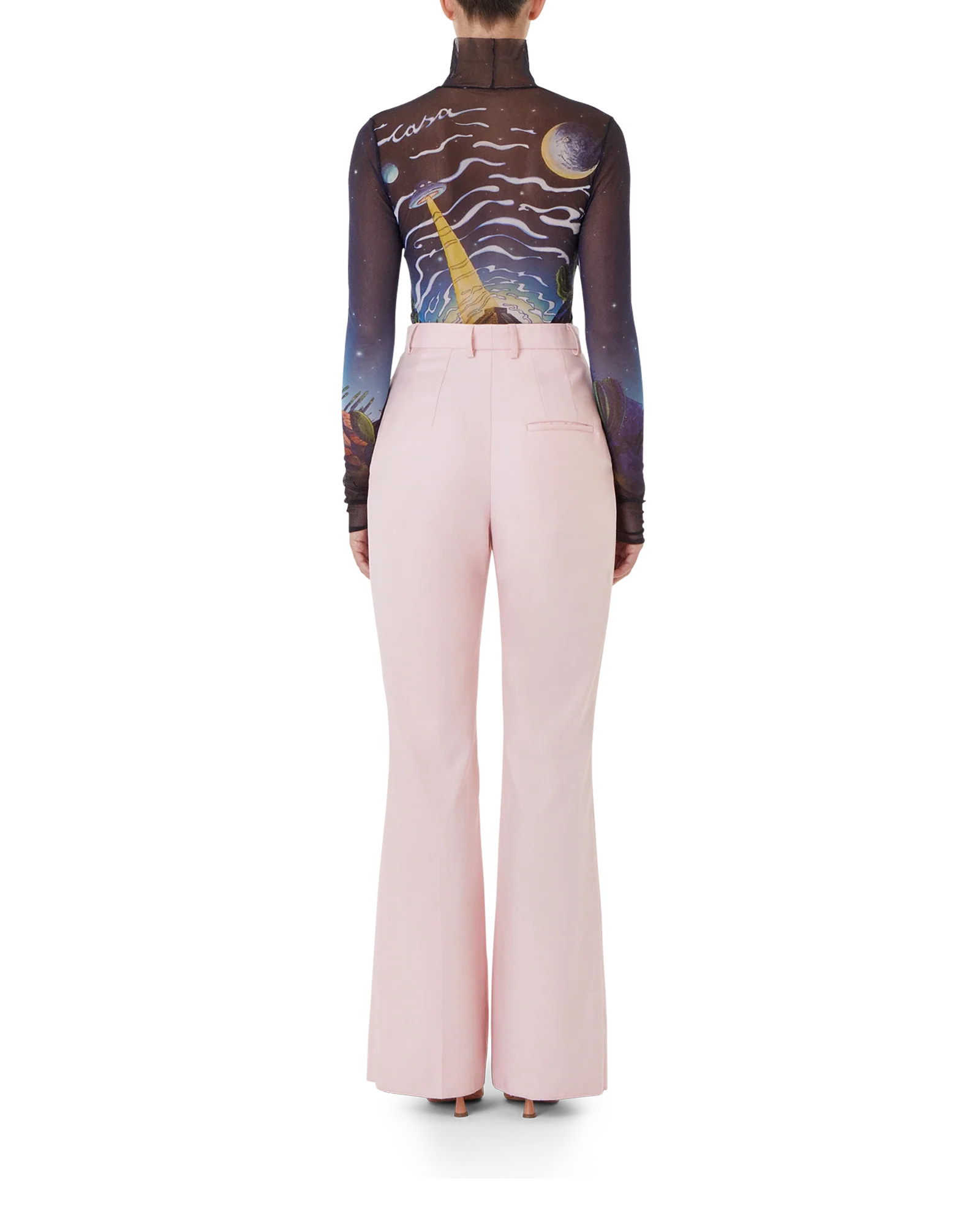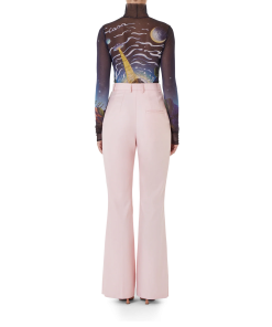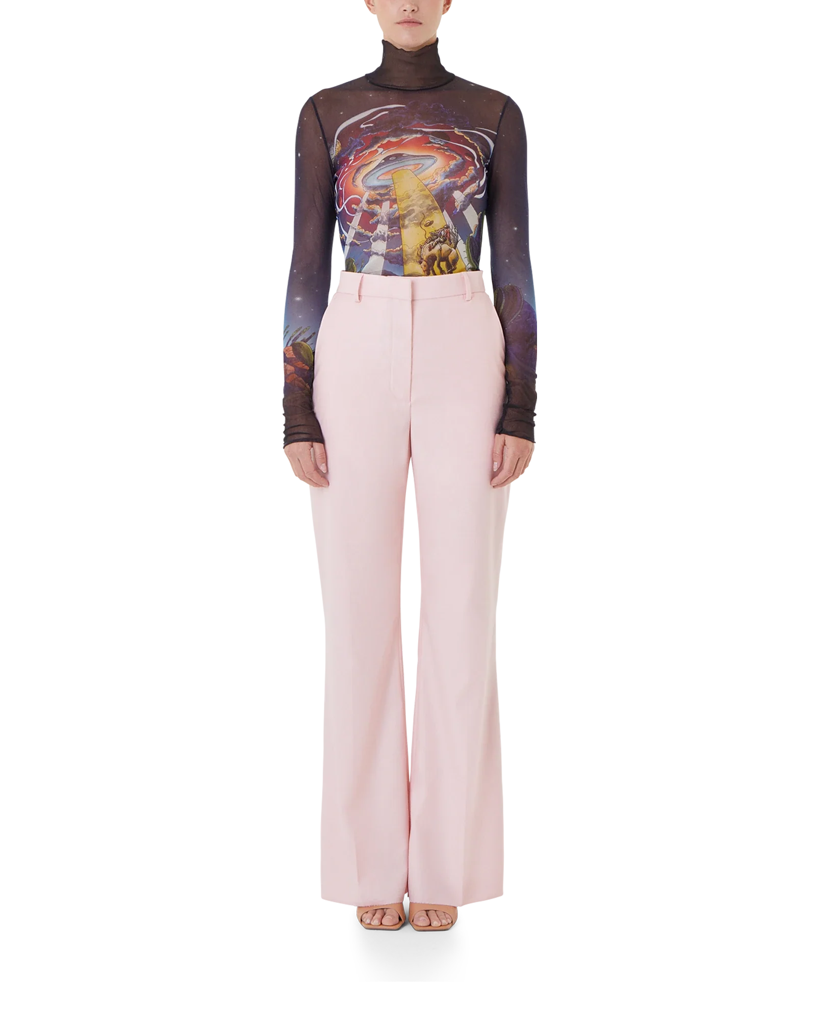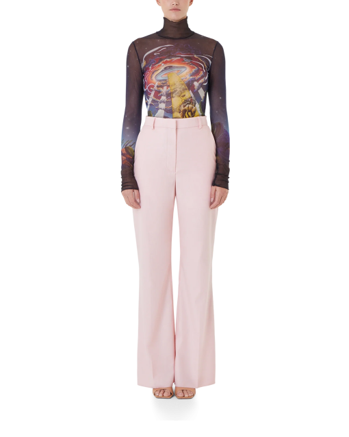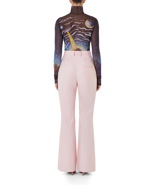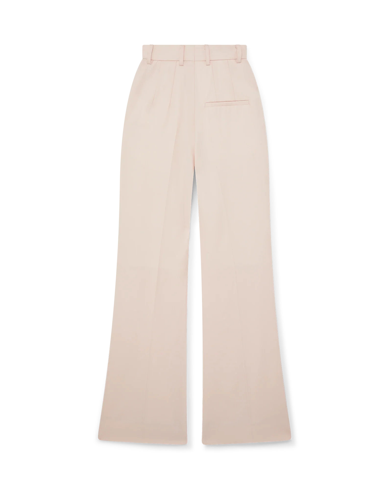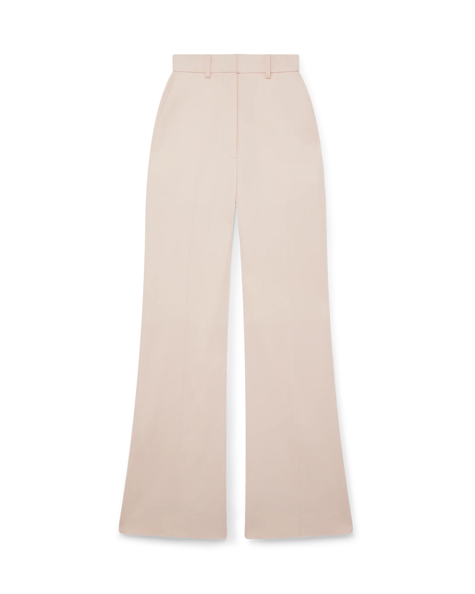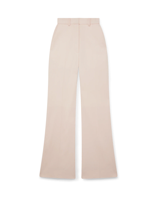 The pink Flared Trousers are tailored pants with a familiar silhouette. Intended to be worn with the coordinating blazer, the trousers are 100% wool and sit high and slim through the waist.