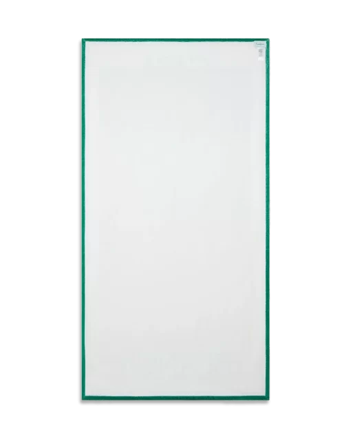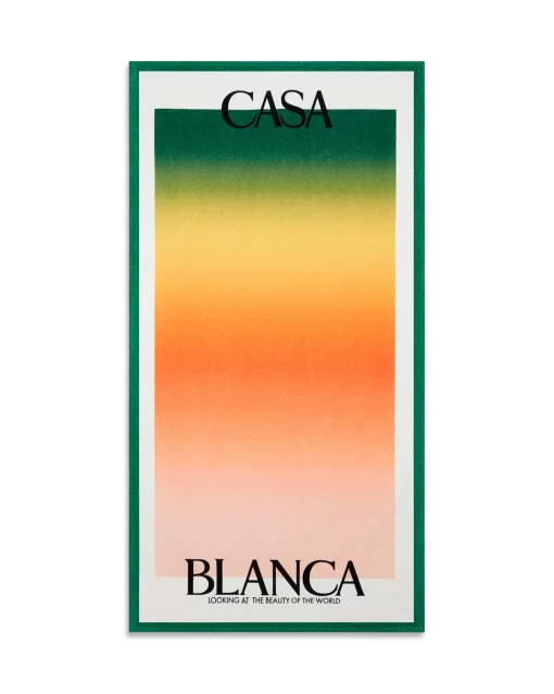 The Gradient beach towel is crafted from organic cotton and features the house’s stacked logo with the season’s gradient print background representative of the rich exchanges across cultural disciplines in African art, music and film. Completed with a white frame and green edges.