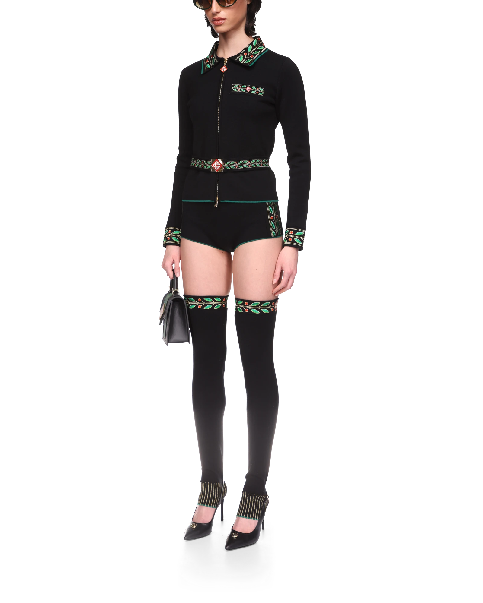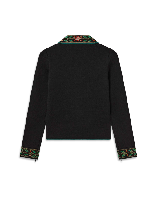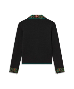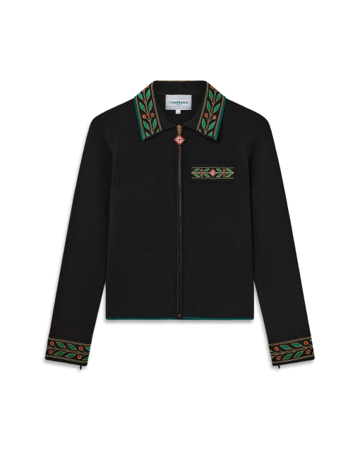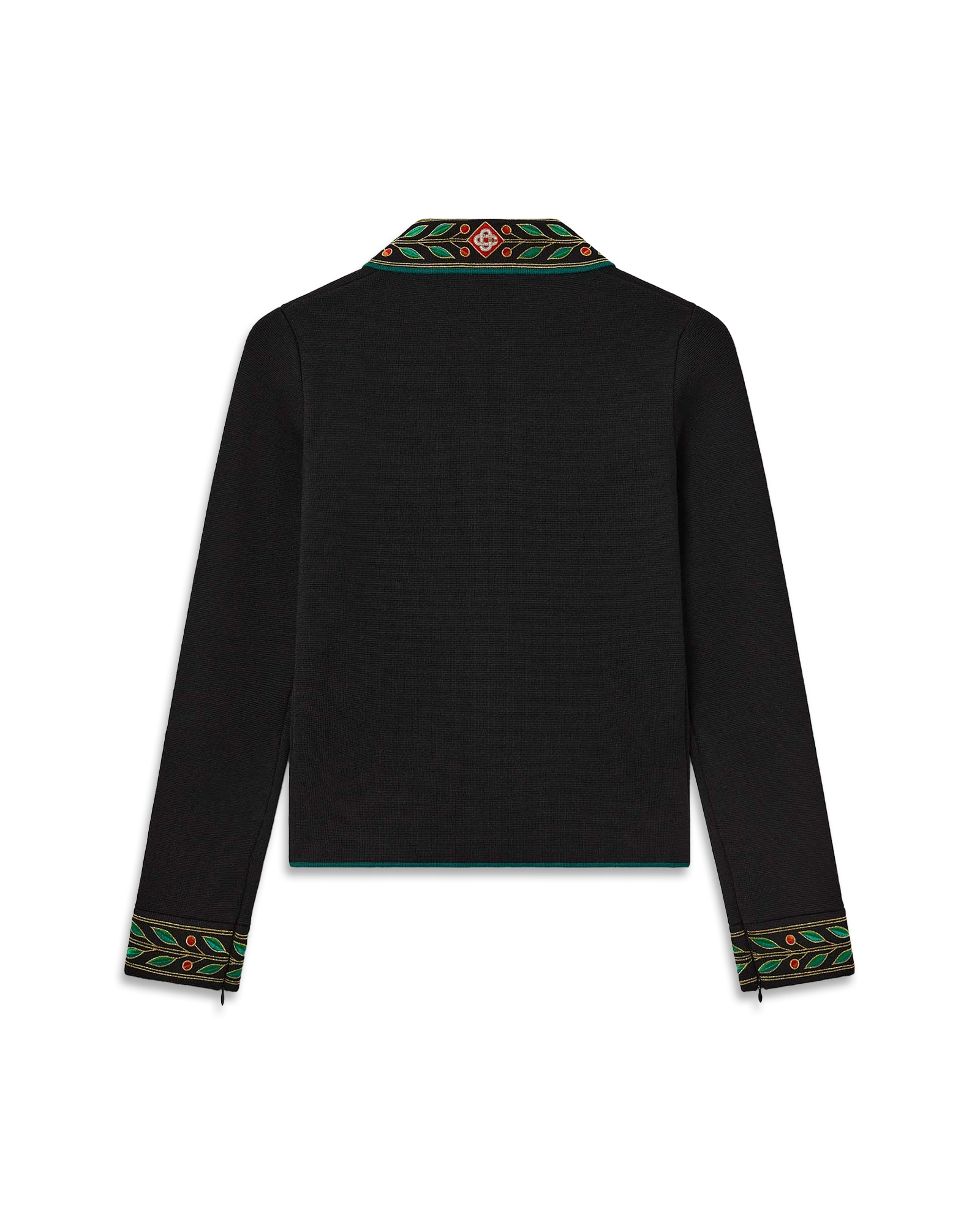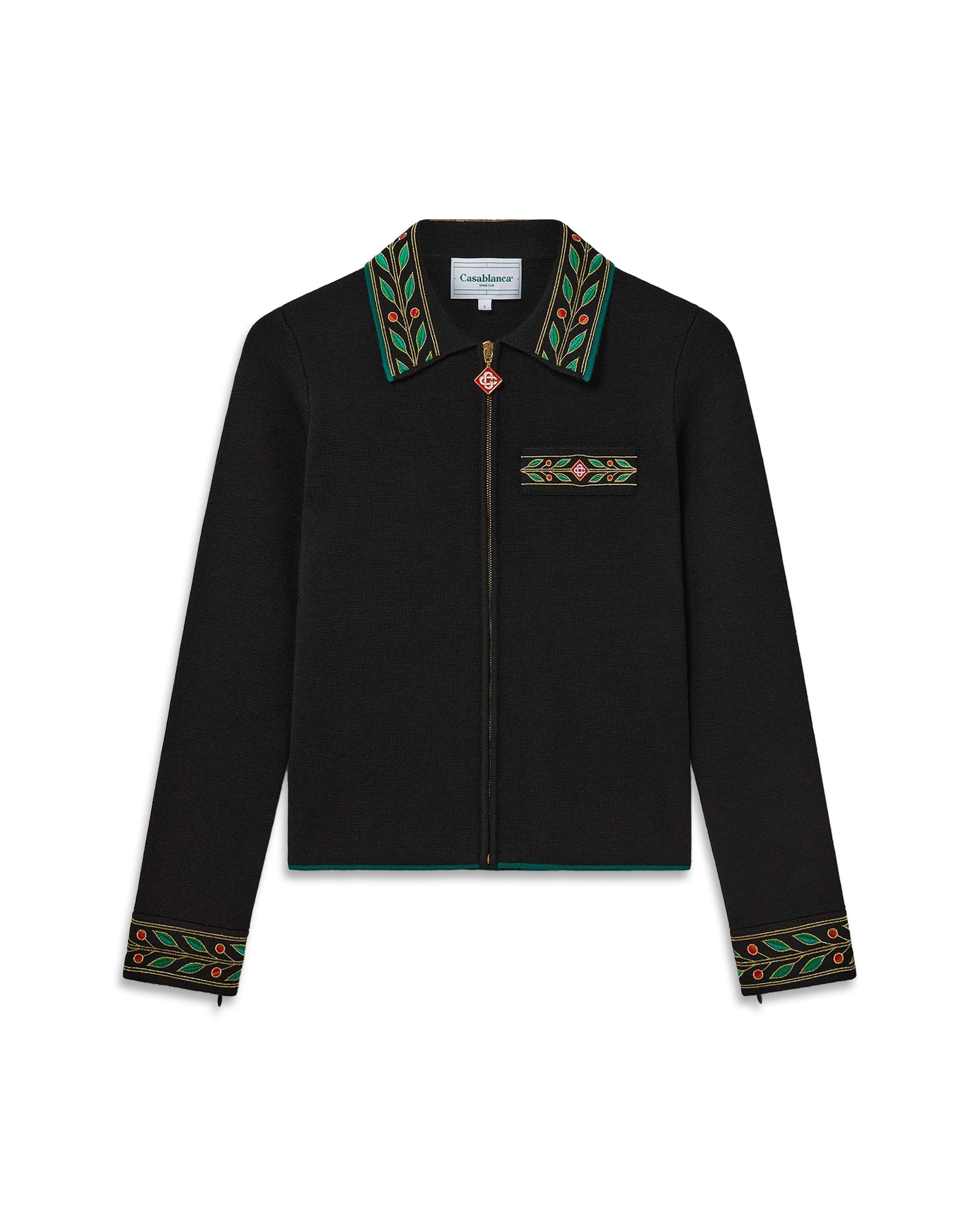 The Laurel knit jacket is a long-sleeve design crafted from knitted merino wool fabric. Completed with zip closure featuring the house’s signature diamond logo, and Laurel artwork on the cuffs, collar, breast pocket, and waistband.