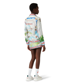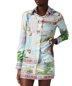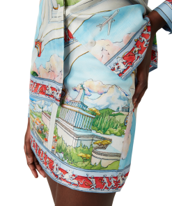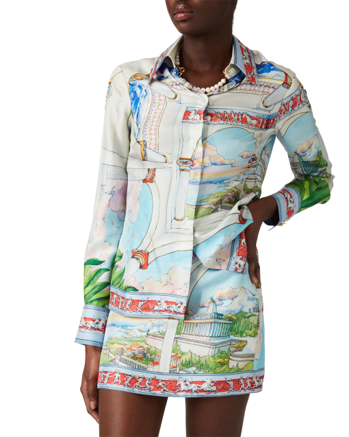 The Le Passage mini silk skirt is a short-style A-line design crafted from silk twill fabric featuring the house’s seasonal artwork – presenting four different dimensions playing on perspectives and architecture. Completed with a zip closure and Greek key-inspired edge detail on the hem.
