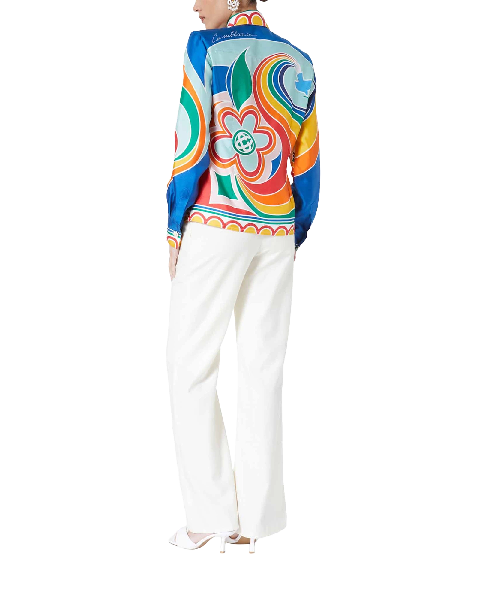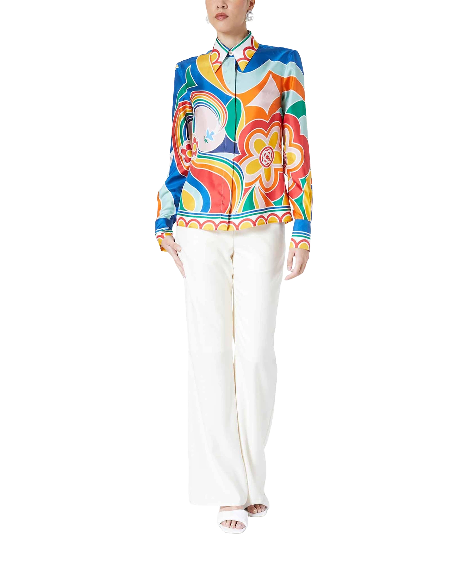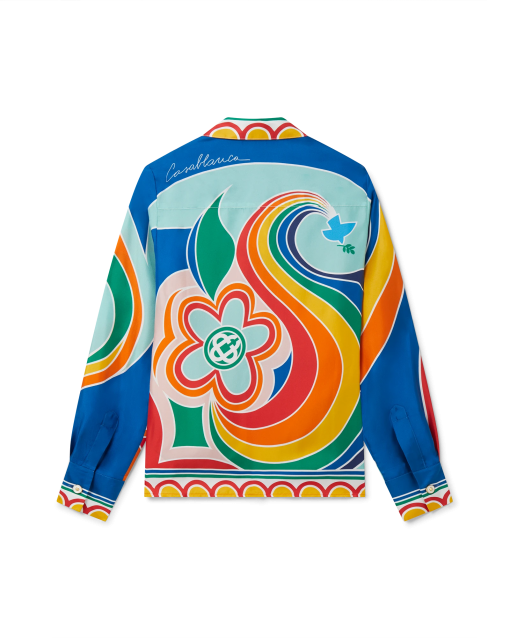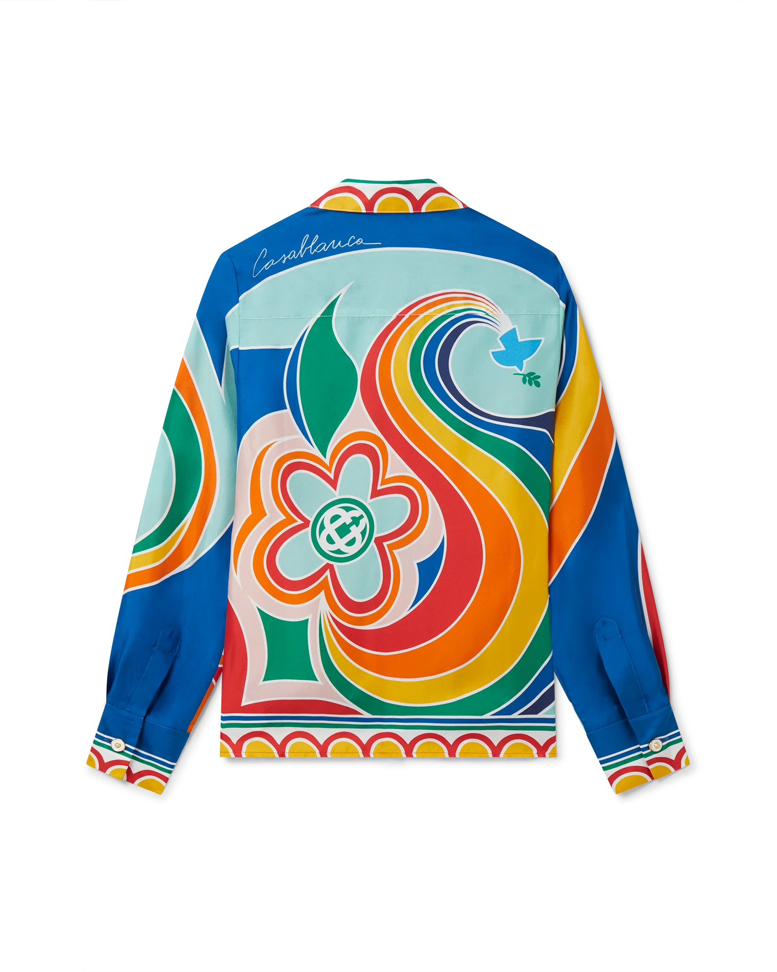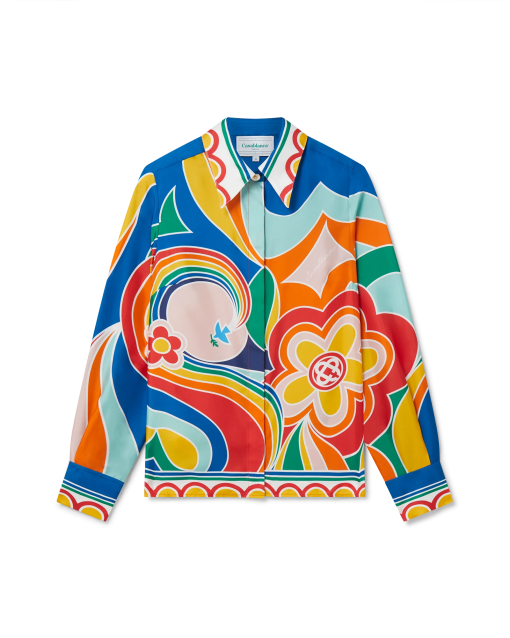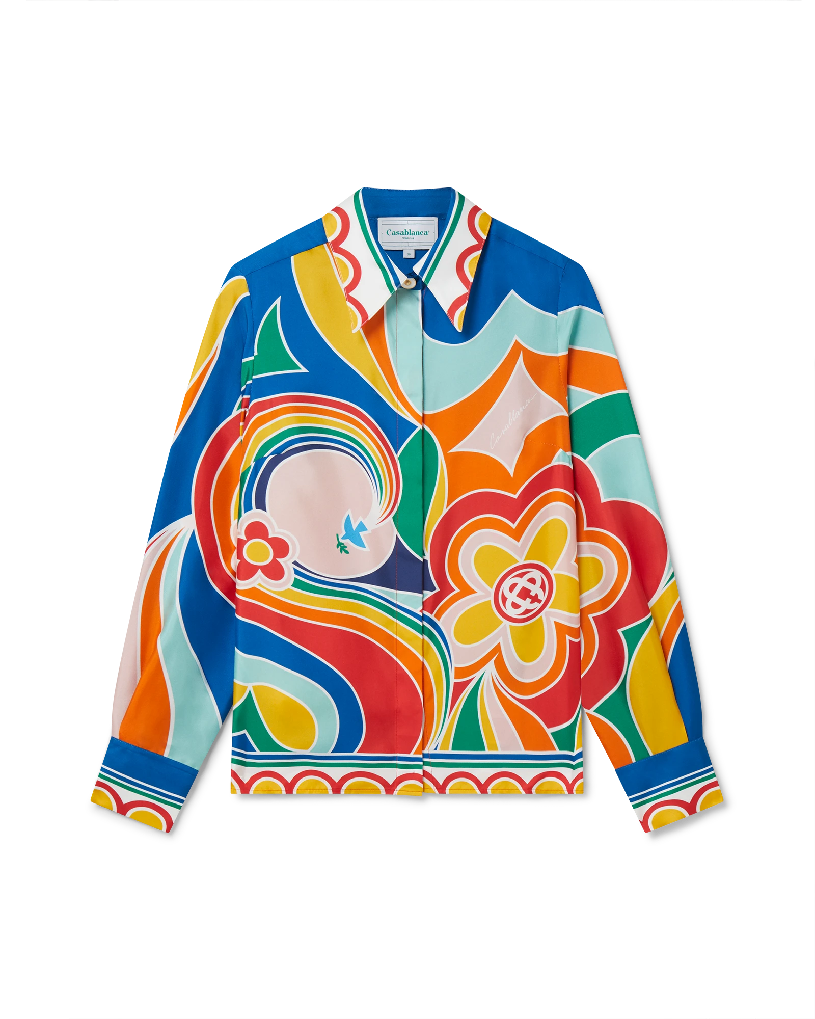 The Le Pouvoir des Fleurs silk shirt is a printed long-sleeve fitted style featuring seasonal artwork incorporating Casablanca symbology with Arabic iconography. Finished with a collar, and front button closure and has been designed for a classic fit.