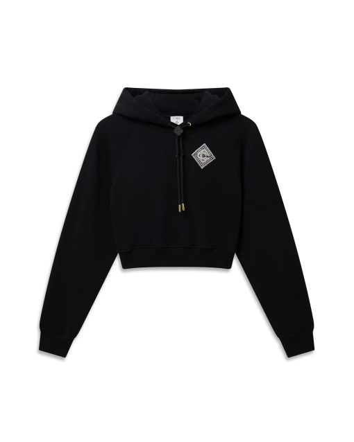 The pearl diamond cropped hooded sweatshirt is an elevated sportswear design crafted from organic cotton. Completed with a hood with gold-plated eyelets, gold-tipped drawstring, branded toggle for secure fastening, a pearl and crystal diamond path and rib cuffs and hem.