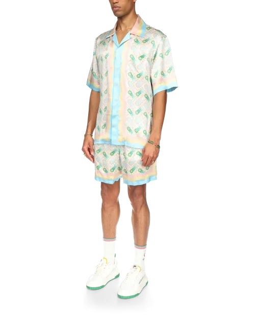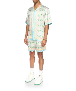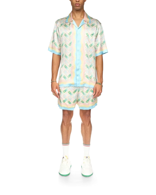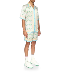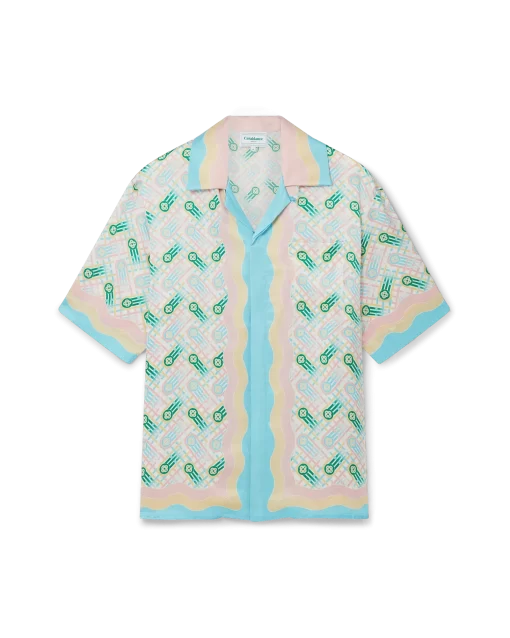 The Ping Pong Silk Shirt is an all-over print design featuring the house’s interlocking CC monogram. Finished with wavy detailing on collar, cuffs and hem, a breast pocket, button closure and a Casablanca branded label.