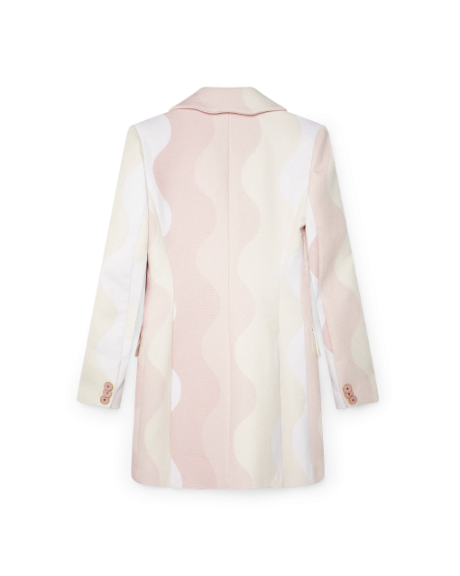 In two shades of pastel pink, the wave motif continues to run throughout our Pink Wave Tailored Dress. With scalloped-edging and pockets, this double-breasted tailored dress is ideal worn alone or layered.