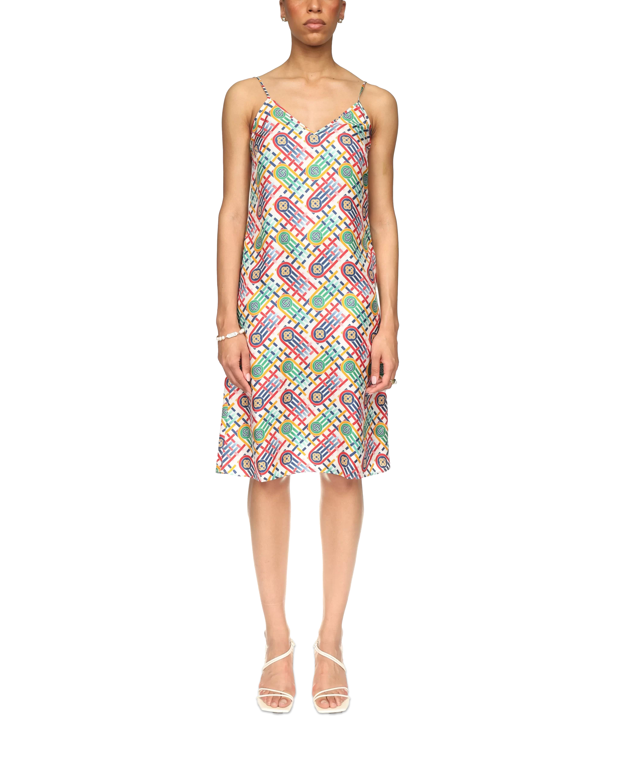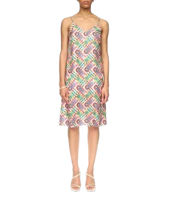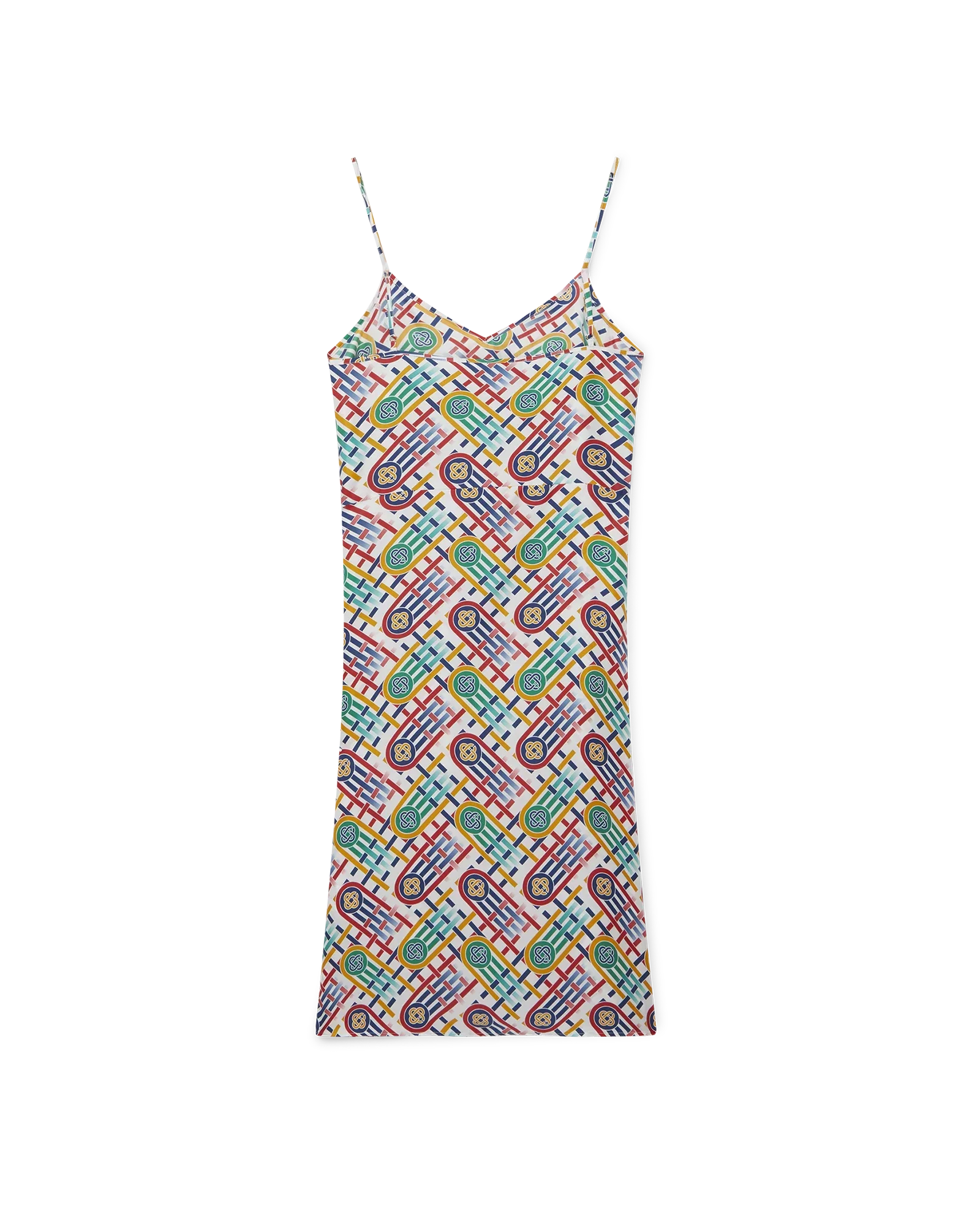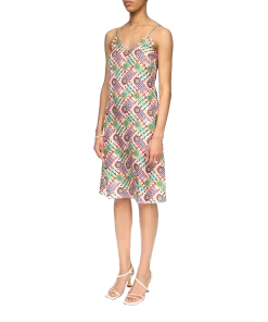 The Tennis Monogram silk slip dress features the house’s signature artwork reinterpreted for the exclusive Nordstrom capsule centred around modern tennis-inspired athleisure. Finished with a spaghetti strap and gentle v-neckline, slightly flaring at the mid-length skirt.