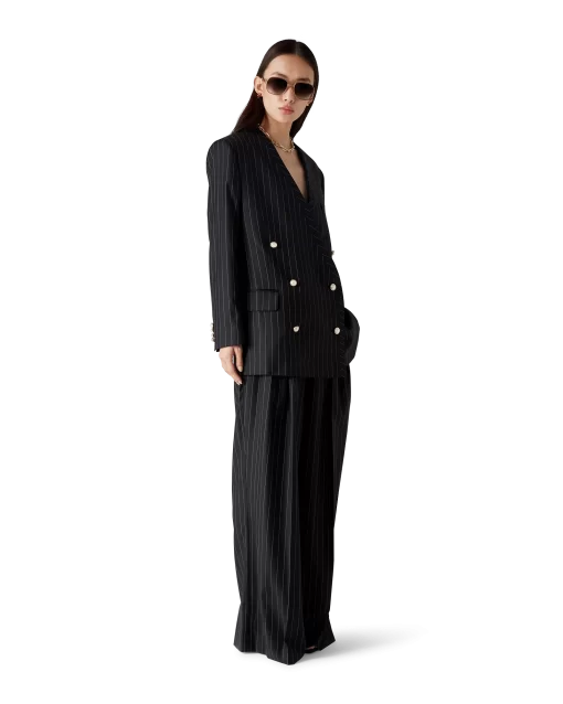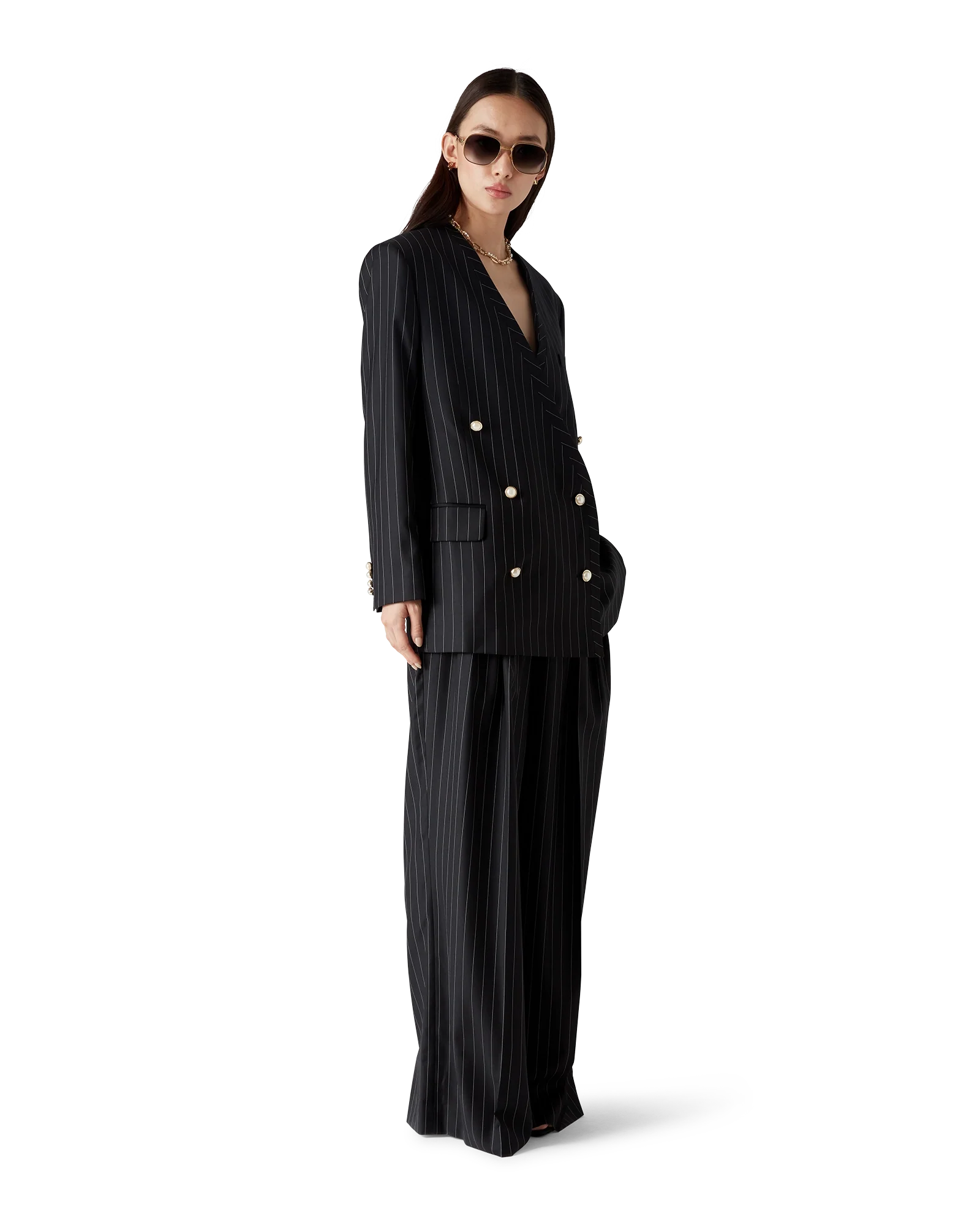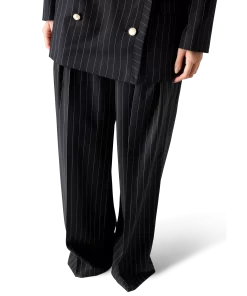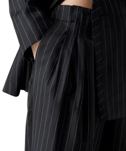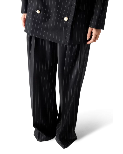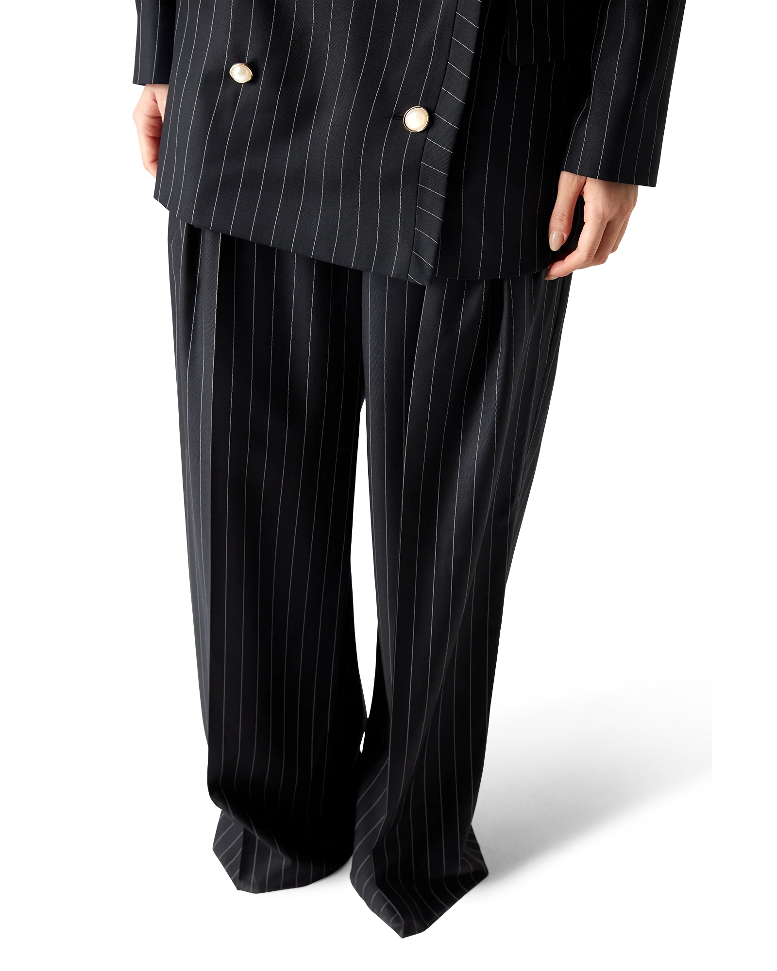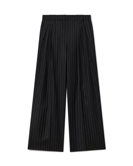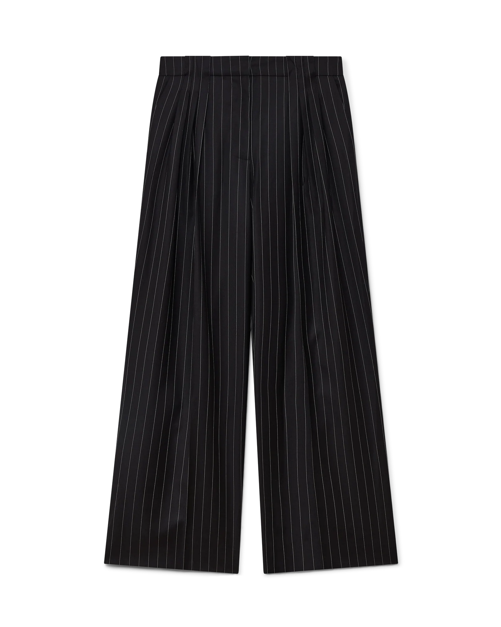 The wool pinstripe triple pleat tailored trousers are a straight-leg design crafted from wool fabric. Completed with a waistband, belt loops, three pleats, slanted front pockets, and welt back pockets with flat shank CC button closure.